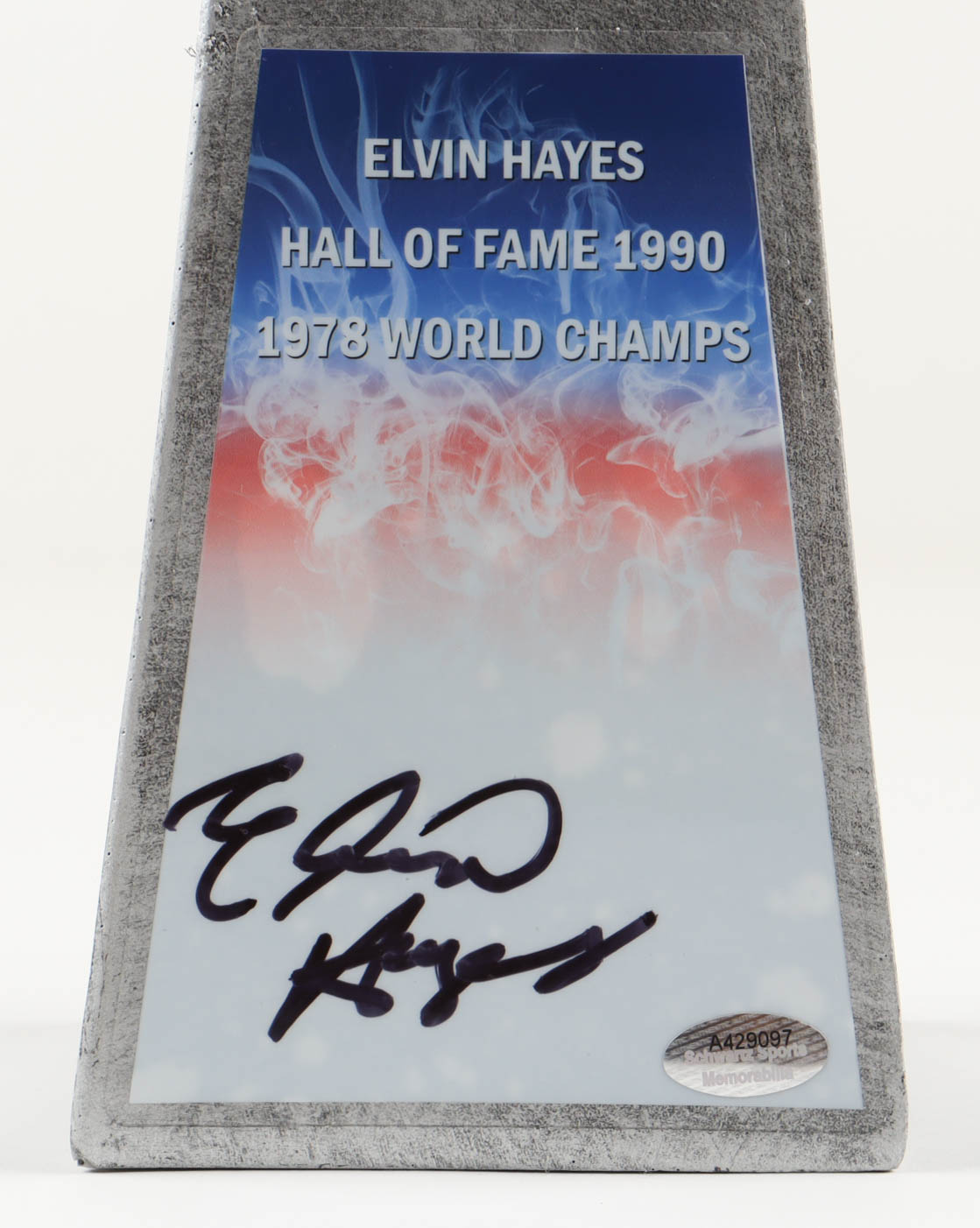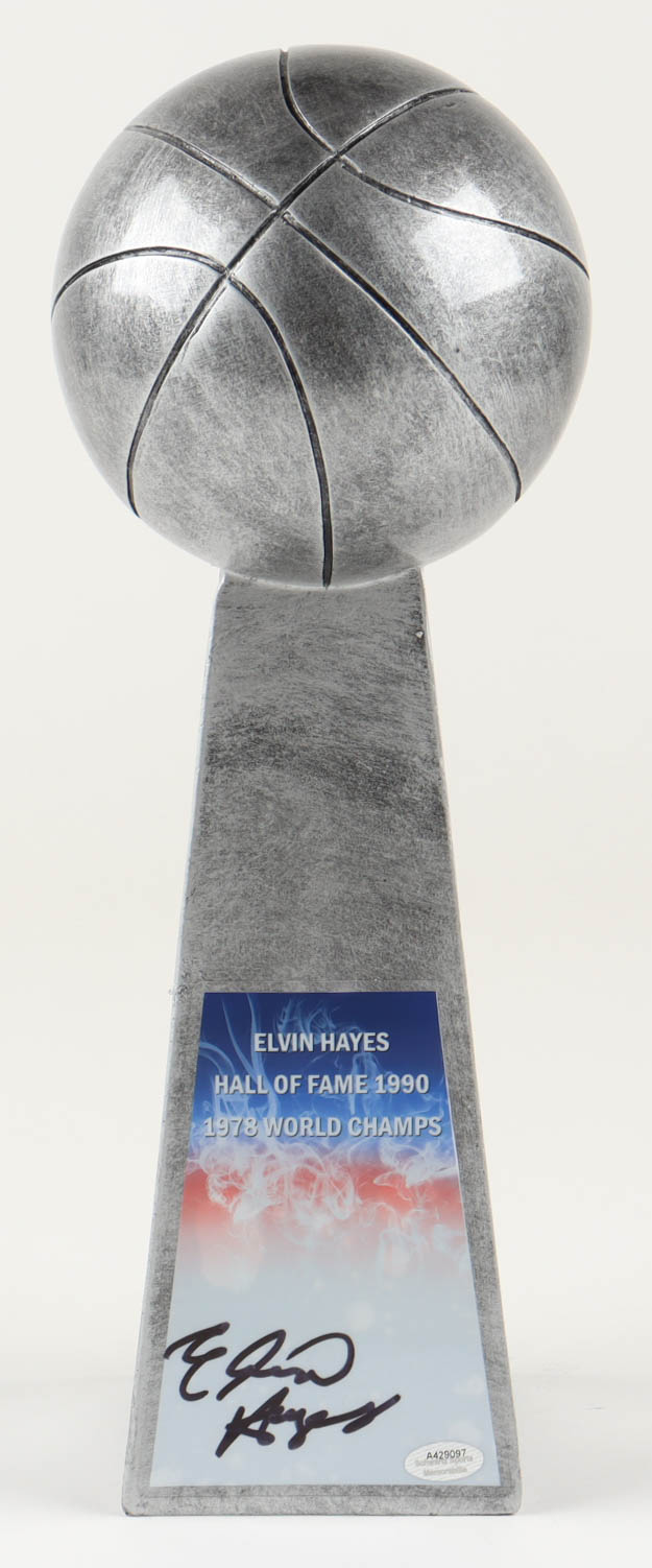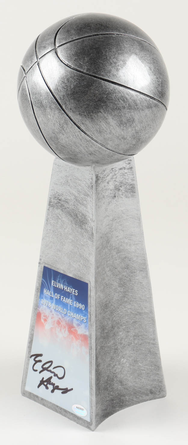 Replica championship trophy measures approximately 14" in height and has been hand-signed by Elvin Hayes (Washington Bullets, HOF).