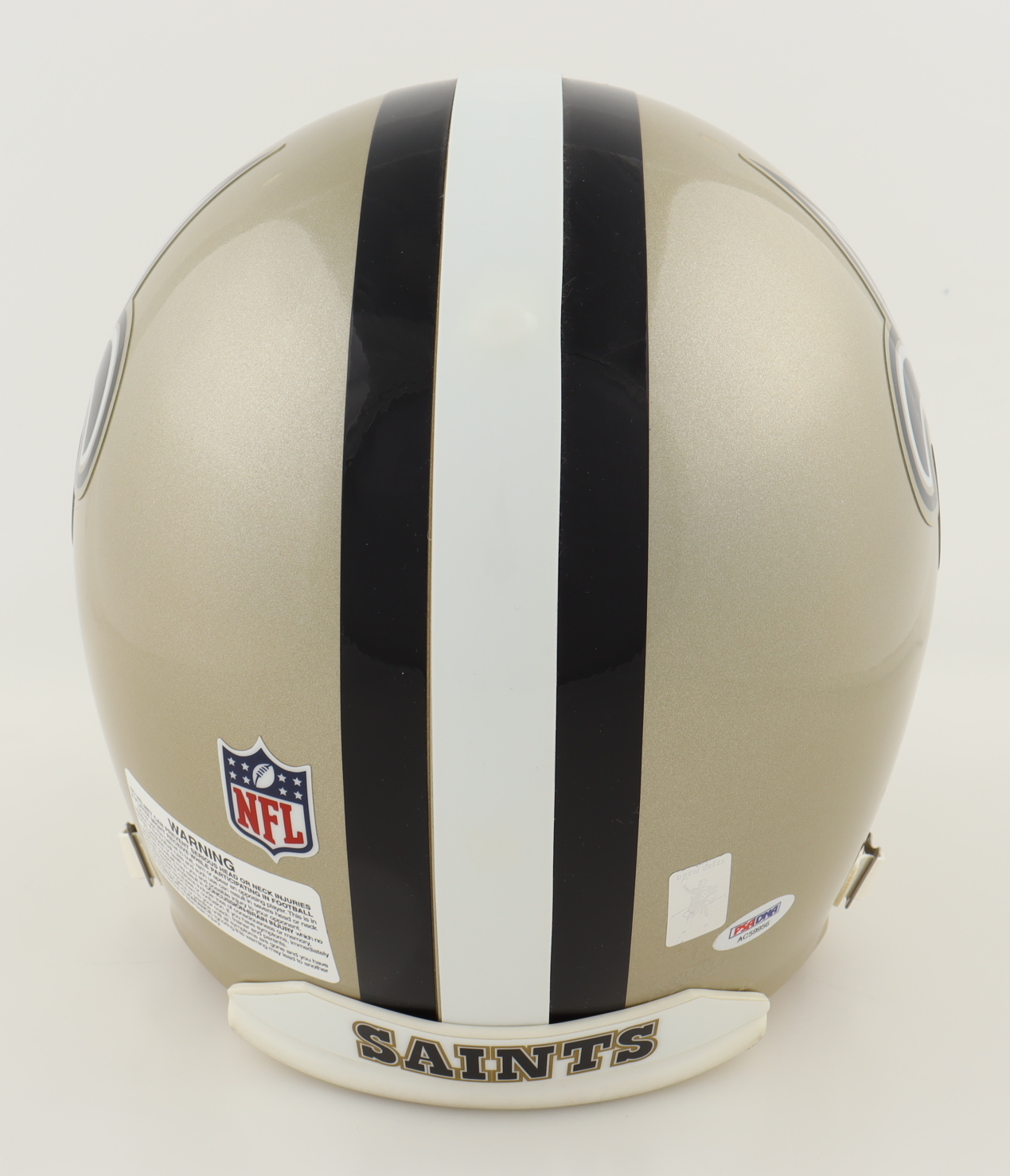 Riddell New Orleans Saints full-size authentic on-field helmet. Hand-signed and inscribed by Drew Brees.