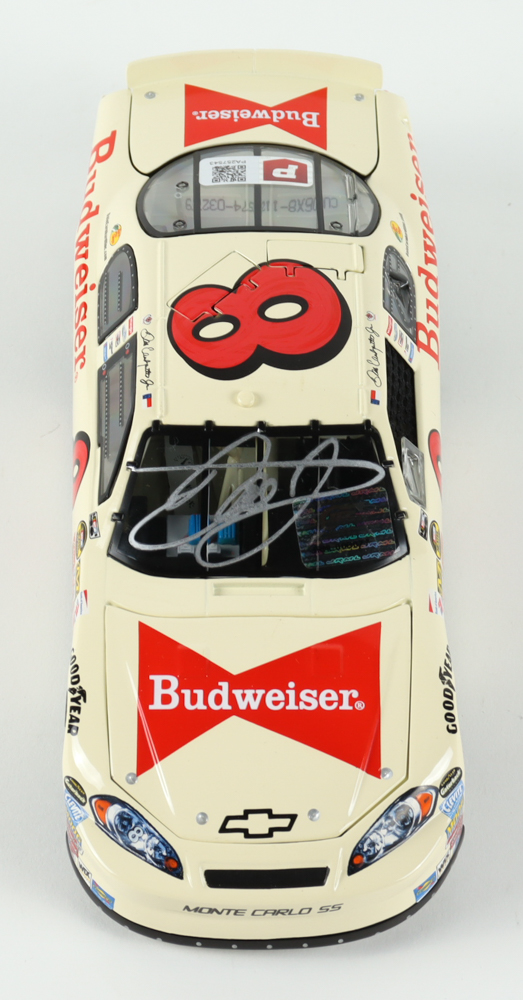 Premium die-cast car hand-signed on the windshield by Dale Earnhardt Jr. The car is limited edition