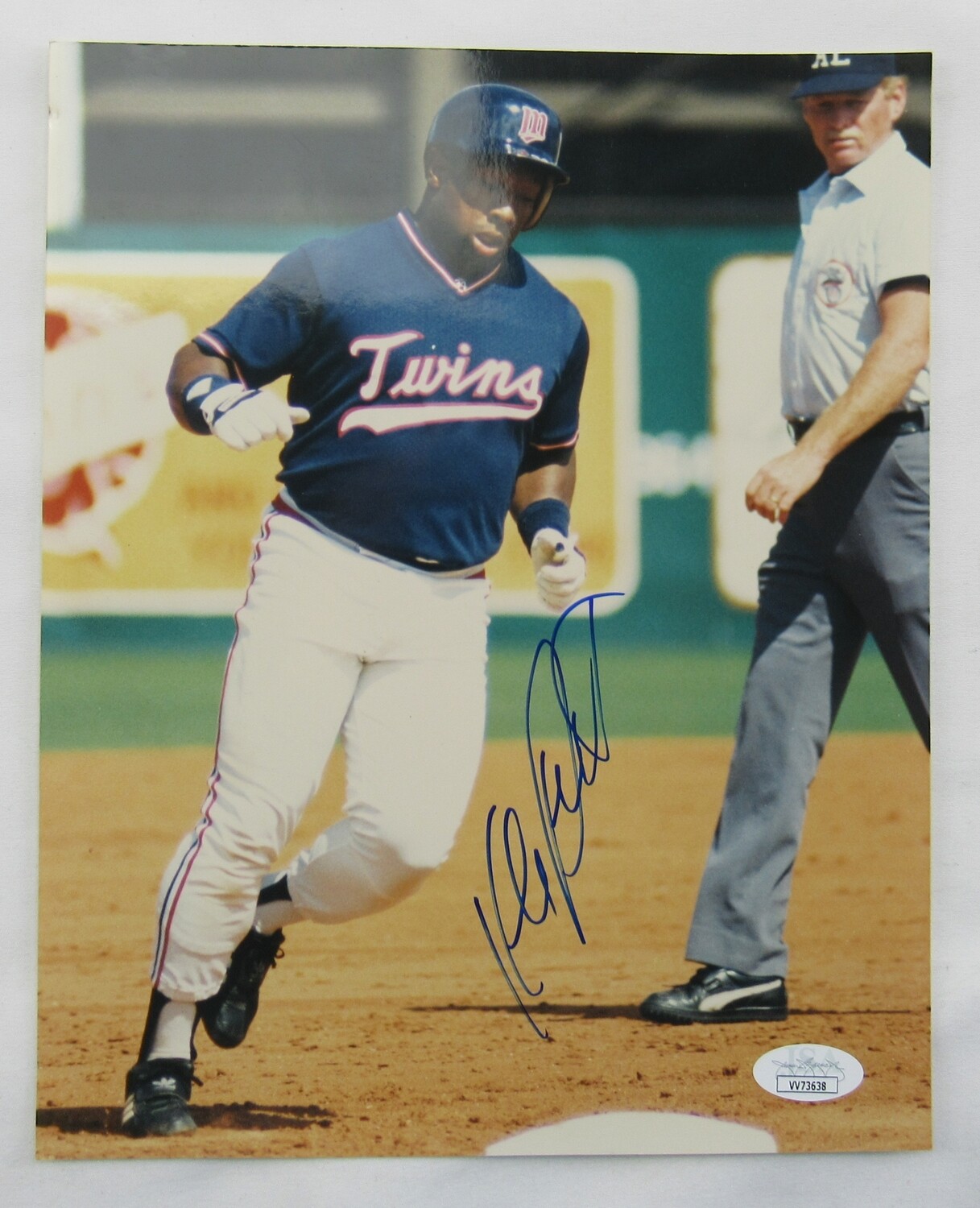 Photo measures 8" x 10" in size. Hand-signed by Kirby Puckett (D. 2006, Minnesota Twins, HOF).