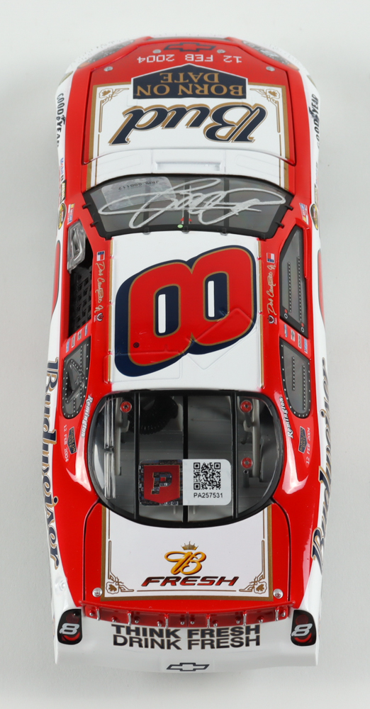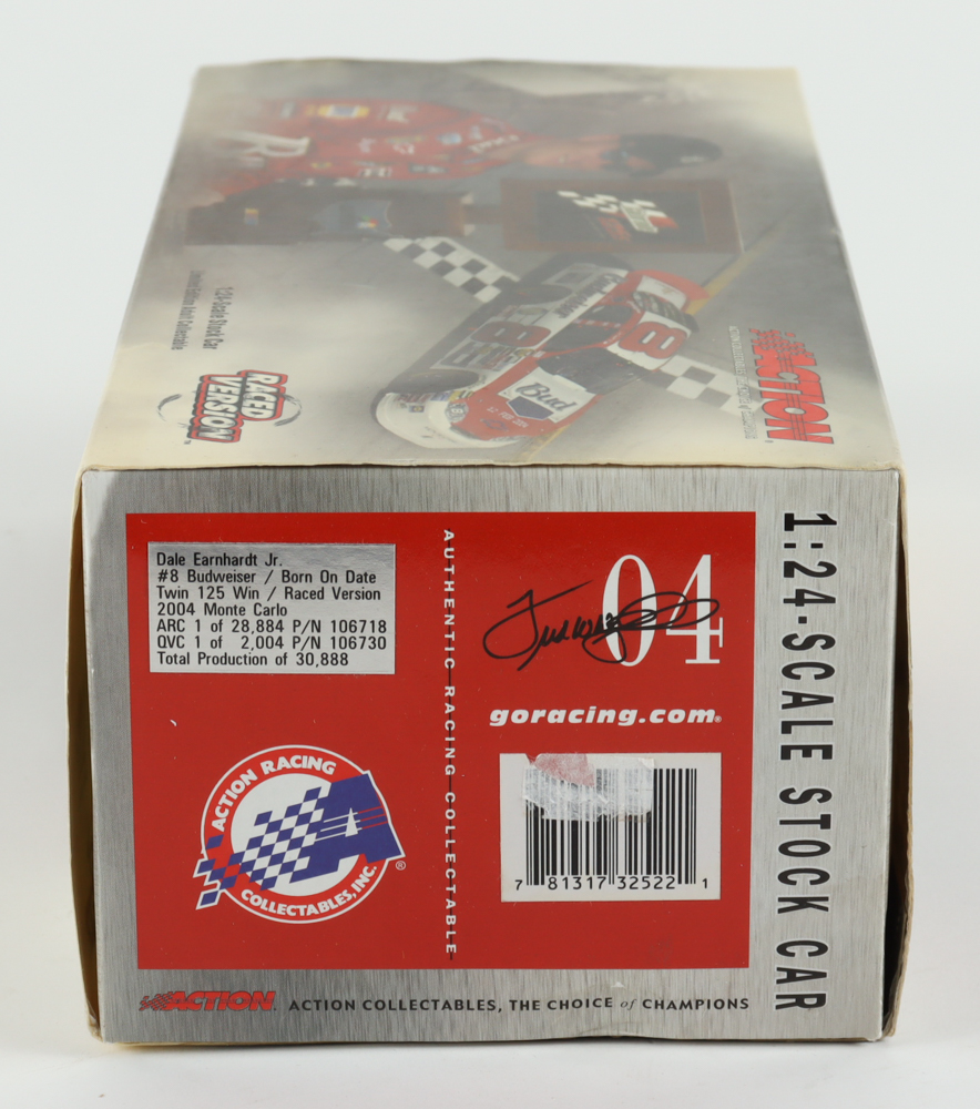Dale Earnhardt Jr. Signed NASCAR #8 Budweiser / Born On Date / Twin 125 Win - Raced Version - 2004 Monte Carlo - 1:24 Premium Action Diecast Car (Dale Jr. & PA)