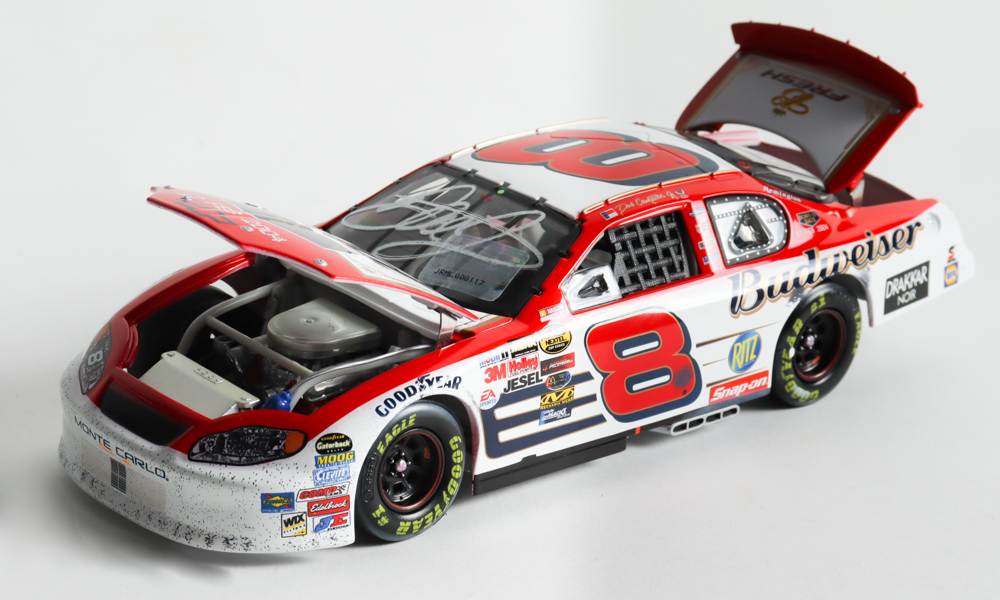 Premium die-cast car hand-signed on the windshield by Dale Earnhardt Jr. The car is limited edition just 30,888 produced and includes the original packaging.