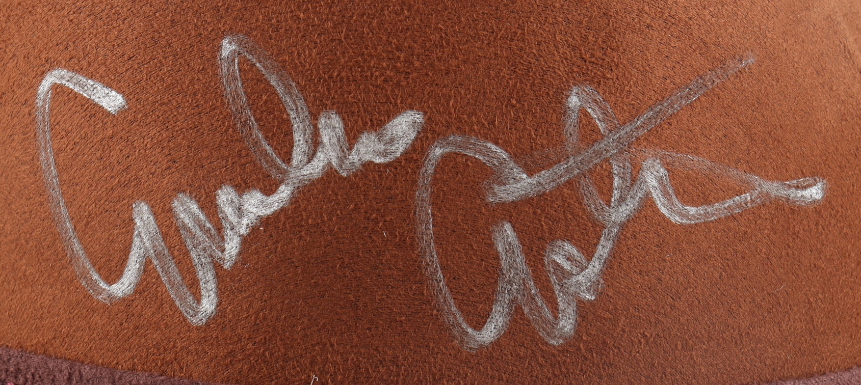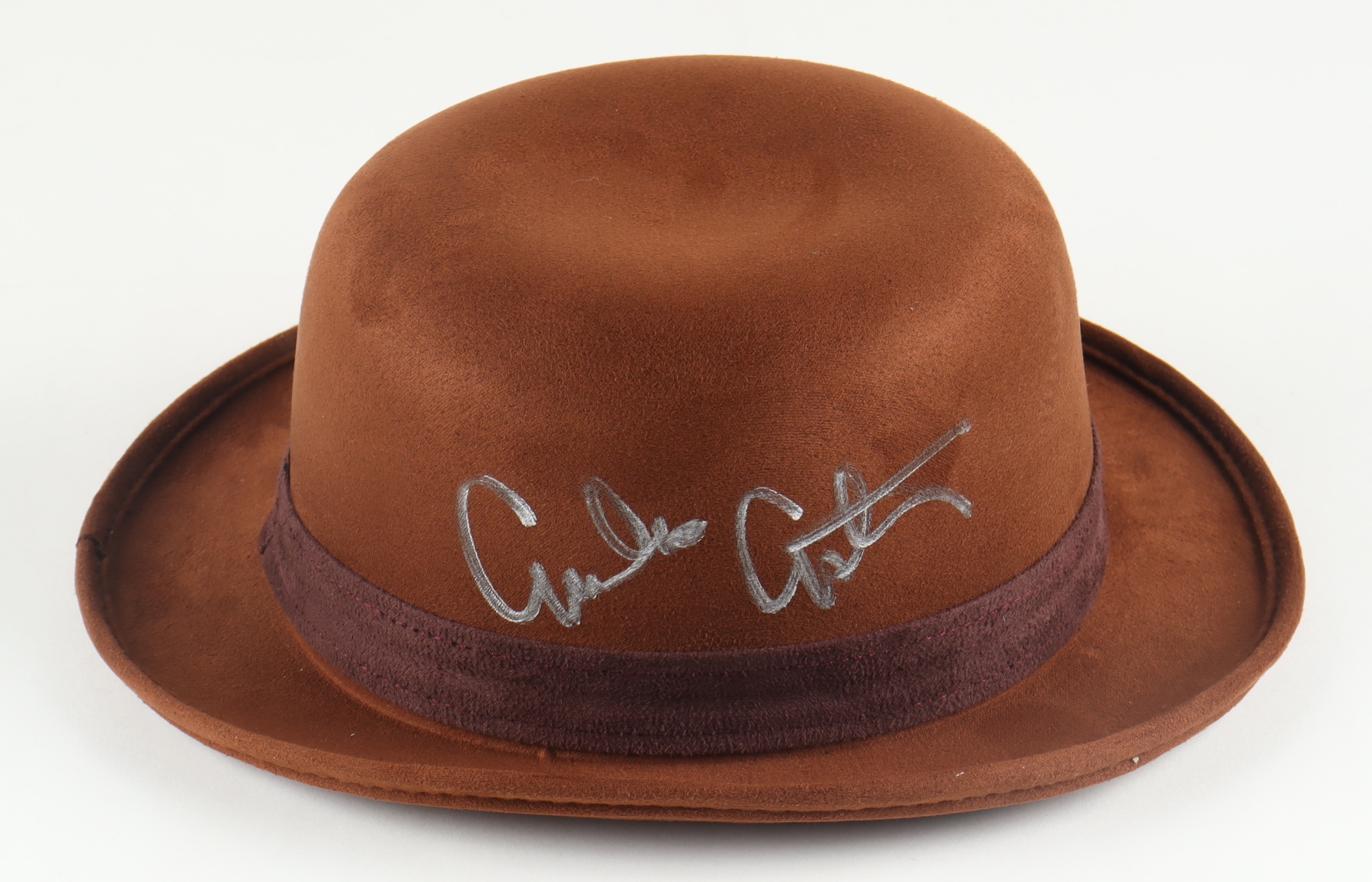 Ferrecci brown derby hat, size L. Hand-signed by Emilio Estevez (Billy the Kid).