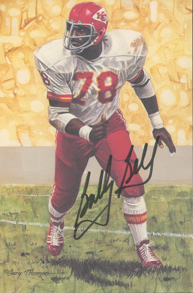Postcard measures 4" x 6" in size and has been hand-signed by Bobby Bell (Kansas City Chiefs, HOF). Postcard is a Collector's Limited Edition #2,931/5,000 from Goal Line Art, Inc.