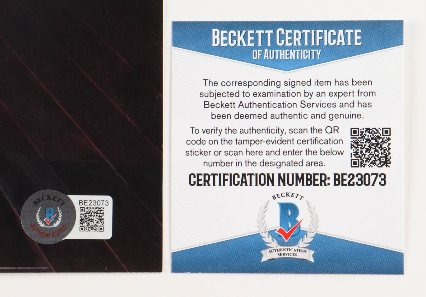 The lot / autograph(s) includes an official Beckett Authentication Services serially-numbered hologram and matching COA for authenticity purposes.