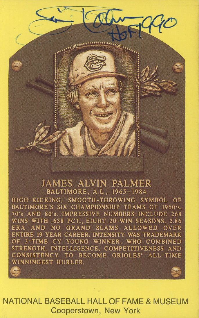 Jim Palmer Signed Hall of Fame Plaque Postcard Inscribed "HOF 1990" (PSA)