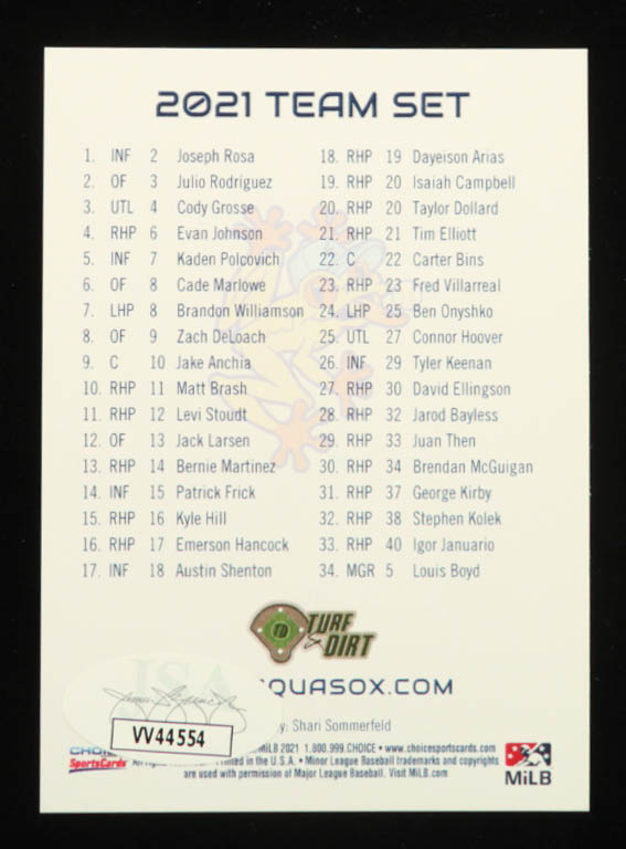 Julio Rodriguez Signed 2021 Everett AquaSox Team Set (JSA)