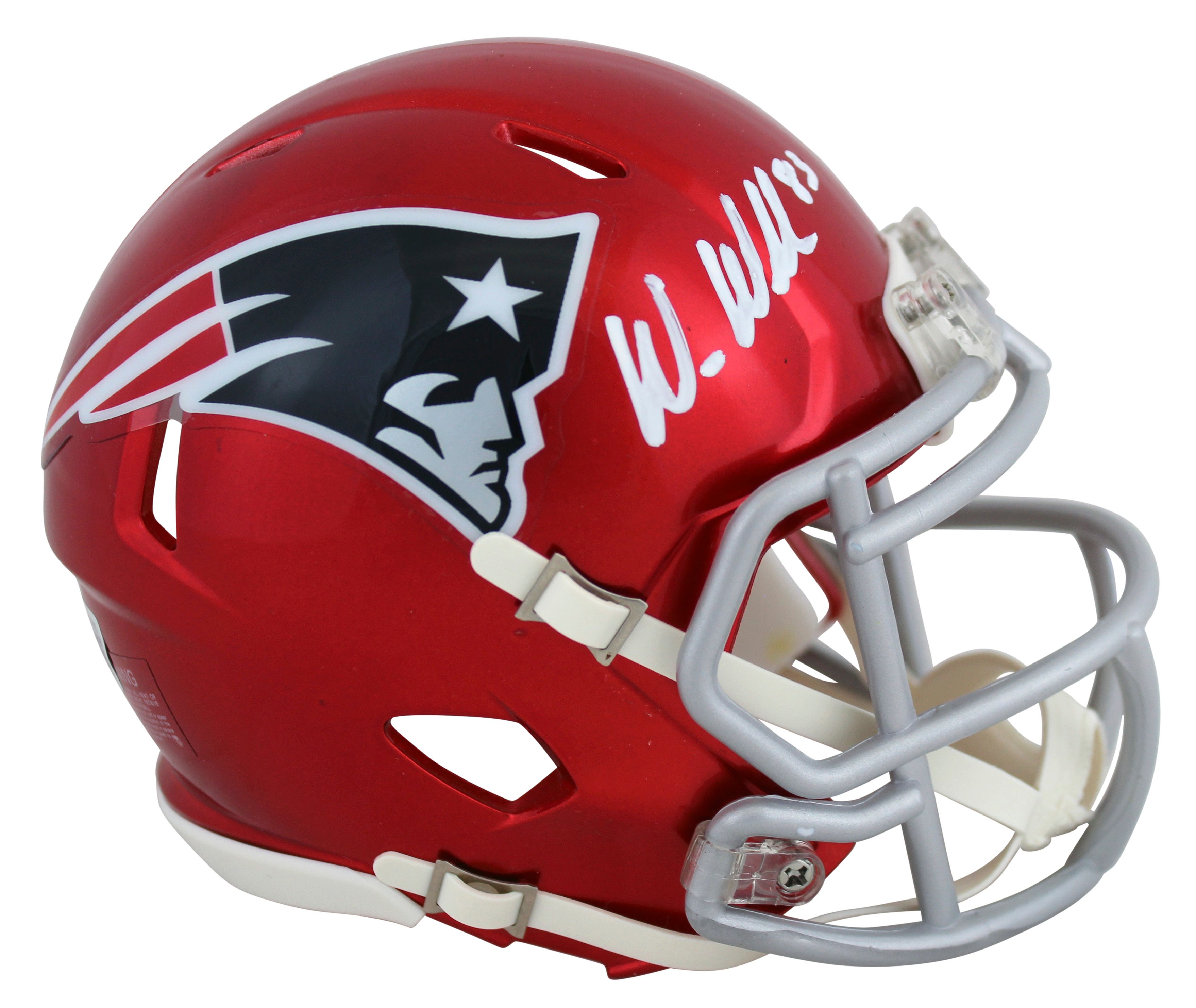 Riddell New England Patriots Flash Alternate Speed mini helmet. Hand-signed by Wes Welker.