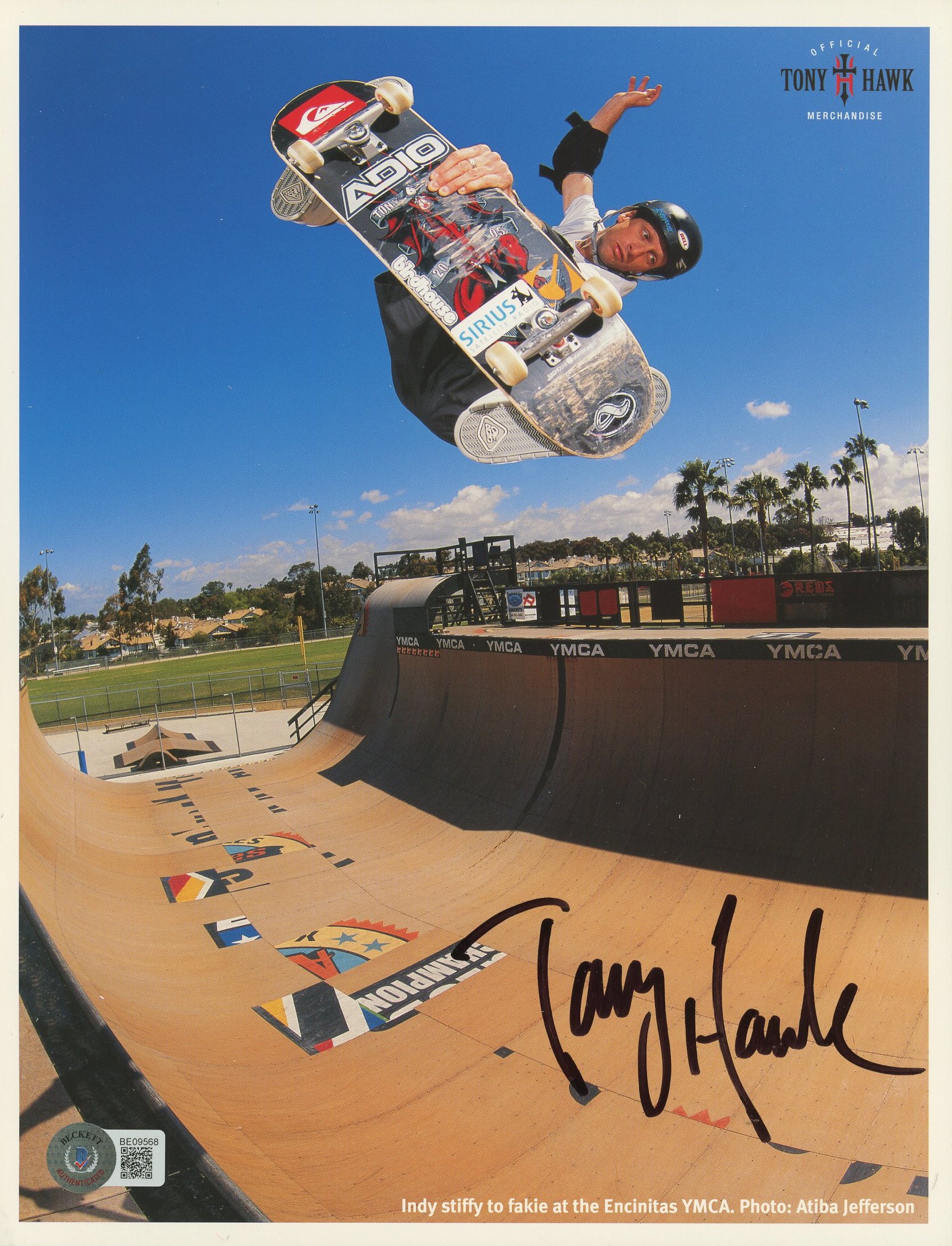 Photo measures 8.5" x 11" in size and has been hand-signed by Tony Hawk (HOF).