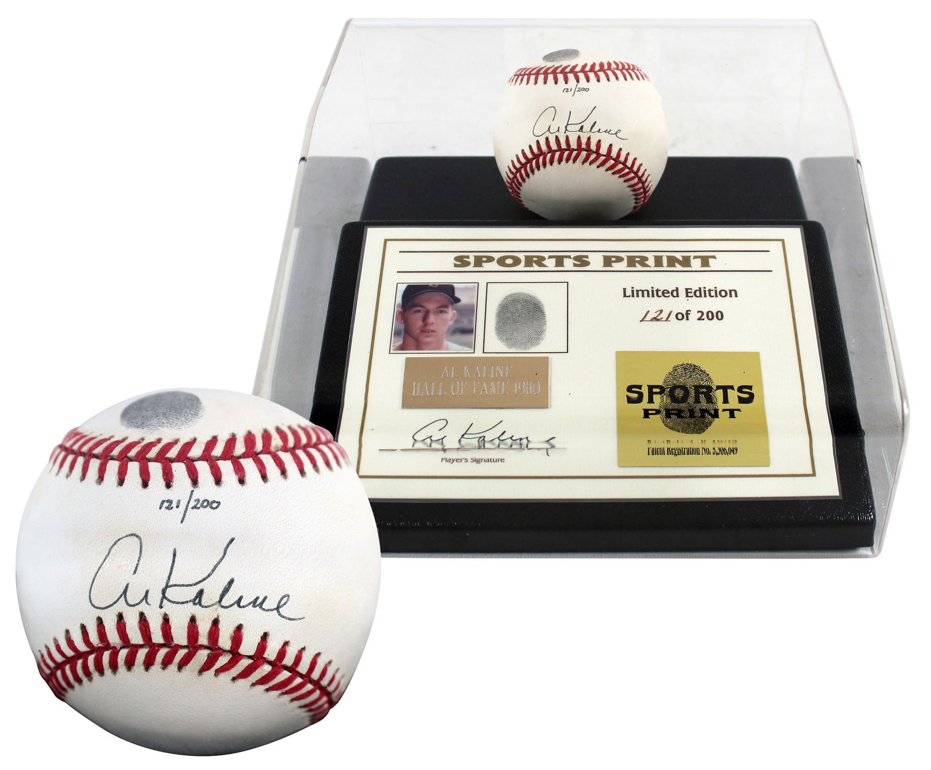 Al Kaline Signed LE OAL Baseball with Thumbprint With Display Case (Sports Print)