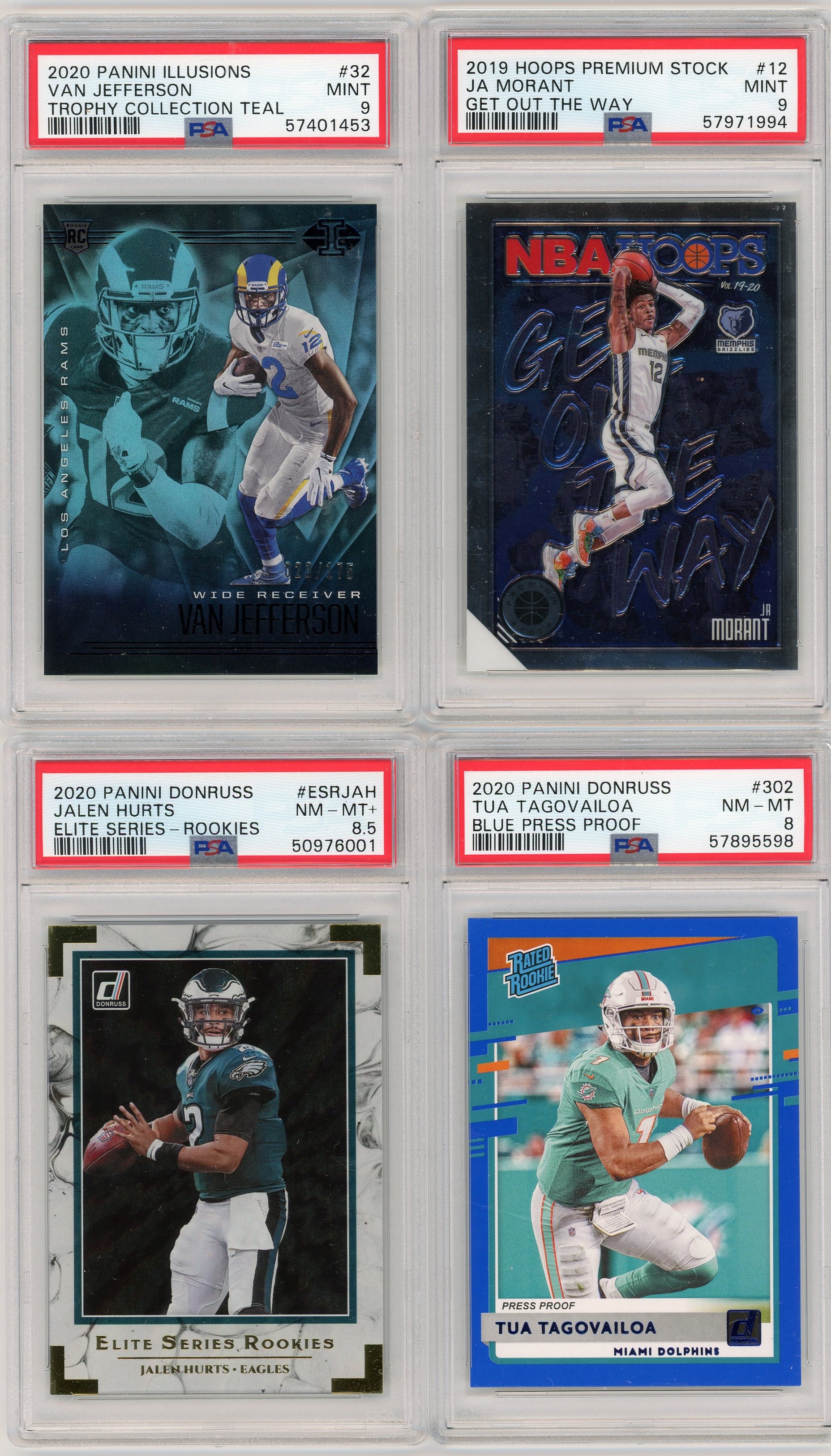 Players included in this series include Ken Griffey Jr., Mike Trout, Derek Jeter, Babe Ruth, Michael Jordan, Kobe Bryant, Shaquille O'Neal, Tim Duncan, Ja Morant, Zion Williamson, Wayne Gretzky, Justin Herbert, Tua Tagovailoa, Van Jefferson, and more!