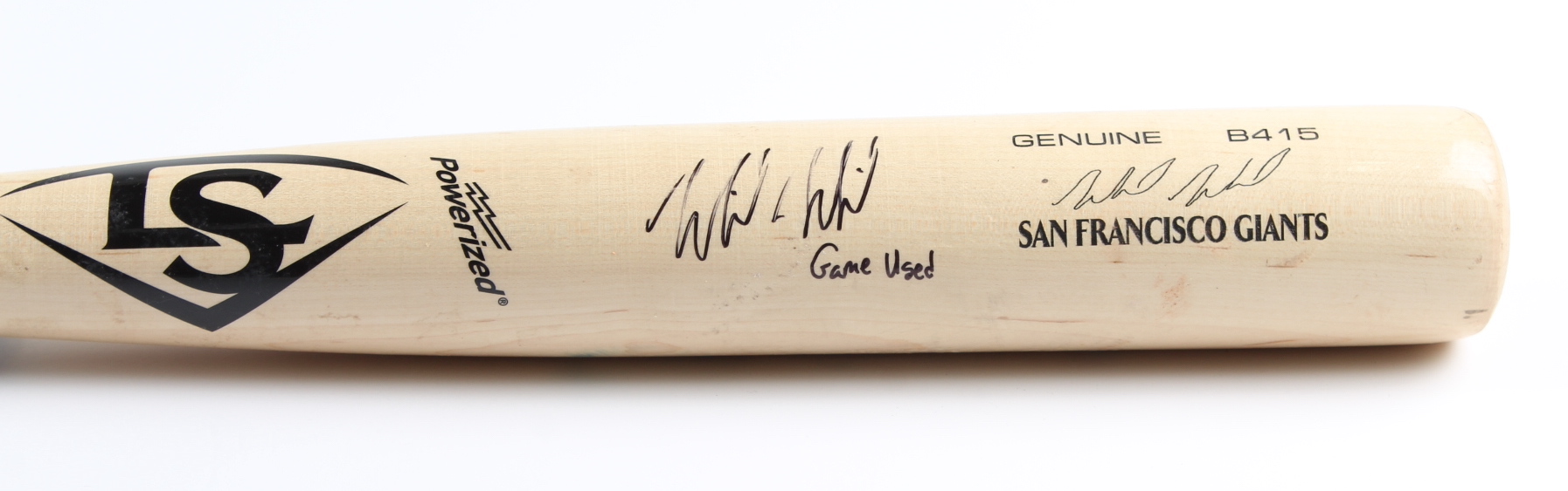 Louisville Slugger Powerized player model game-used baseball bat. Hand-signed and inscribed by Will Wilson (San Francisco Giants).