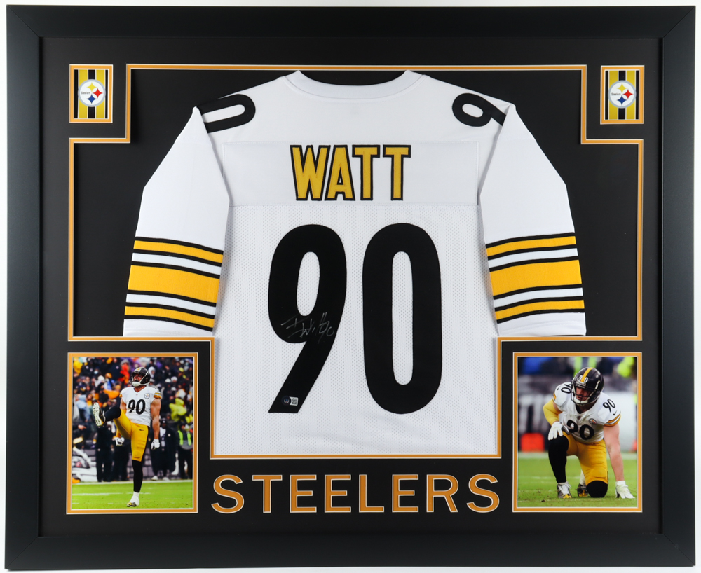 Custom frame measures approximately 35" x 43" in size and features a jersey hand-signed by T. J. Watt.