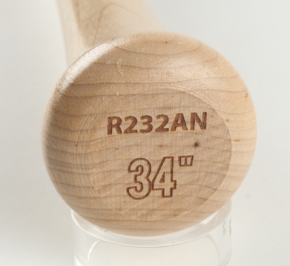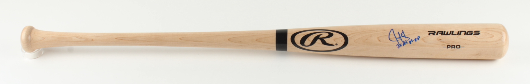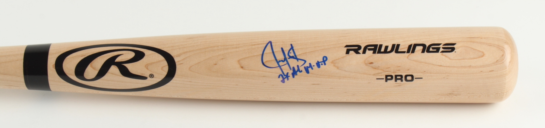 Rawlings Pro blonde baseball bat. Hand-signed and inscribed by Juan Gonzalez (Texas Rangers).