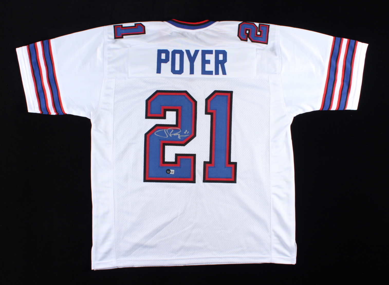 Custom on-field style jersey. Everything is sewn on, size XL. Hand-signed by Jordan Poyer.