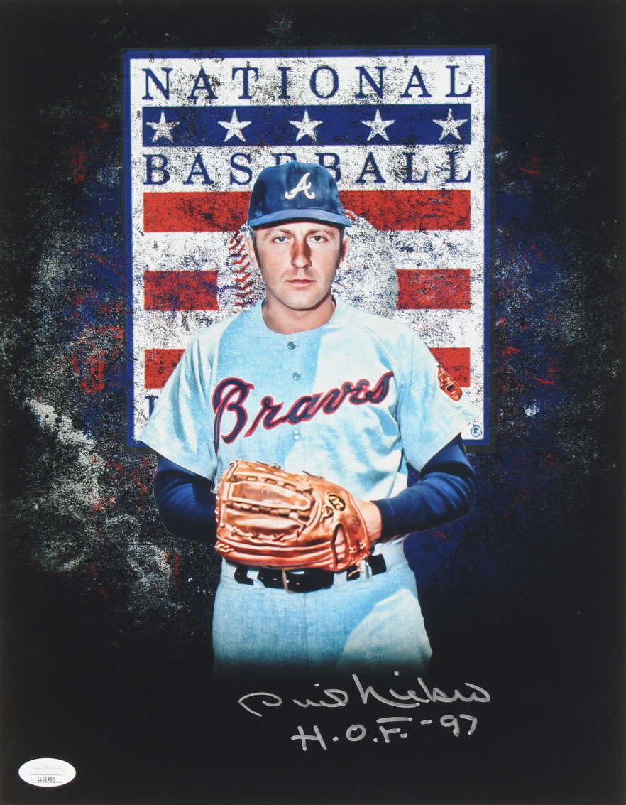 Phil Niekro Signed Braves 11x14 Photo Inscribed "H.O.F. - 97" (JSA)