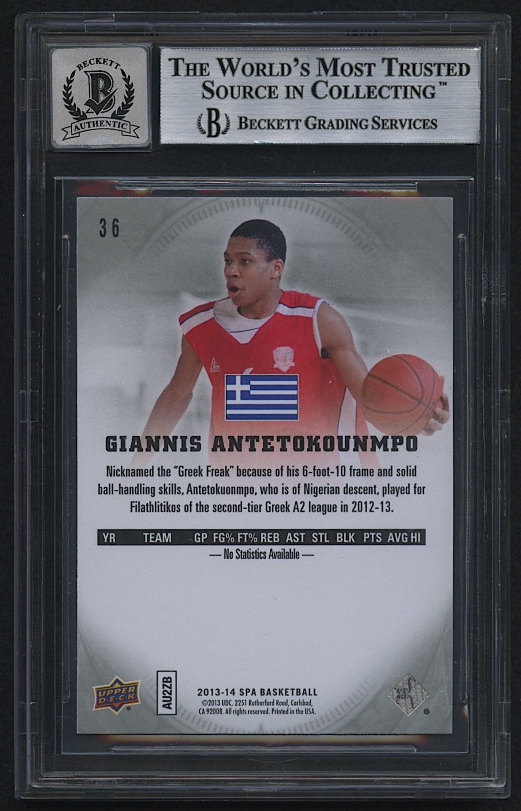 Giannis Antetokounmpo Signed 2013-14 SP Authentic #36 RC (Beckett) (Autograph Graded 10)