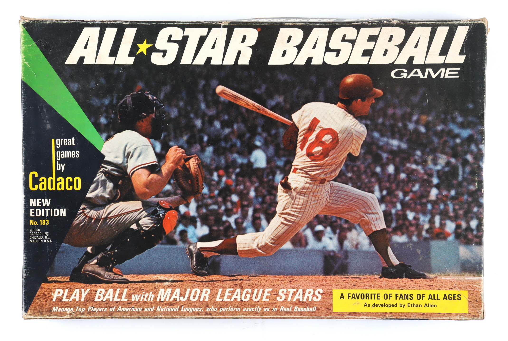 Vintage 1968 Cadaco MLB All-Star baseball board game. Original box measures 12.5" x 19" in size. Please see photos for more details. Please note, the original box shows signs of natural aging.