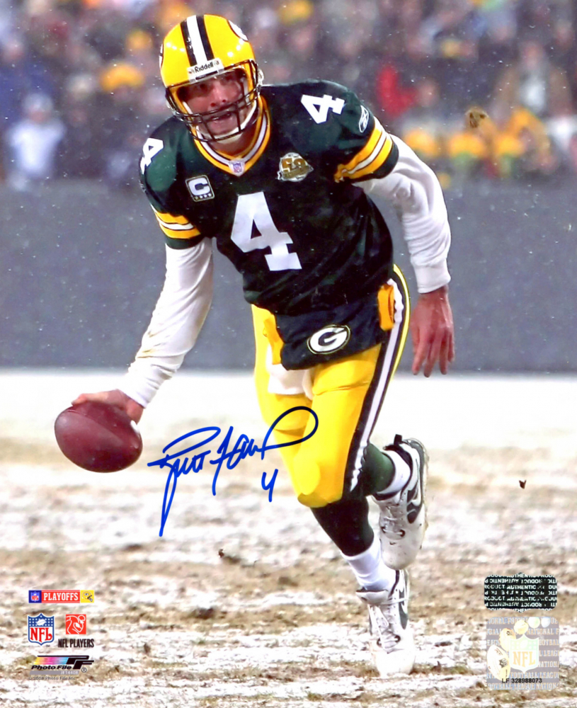 Photo measures 8" x 10" in size and has been hand-signed by Brett Favre (Green Bay Packers, HOF).