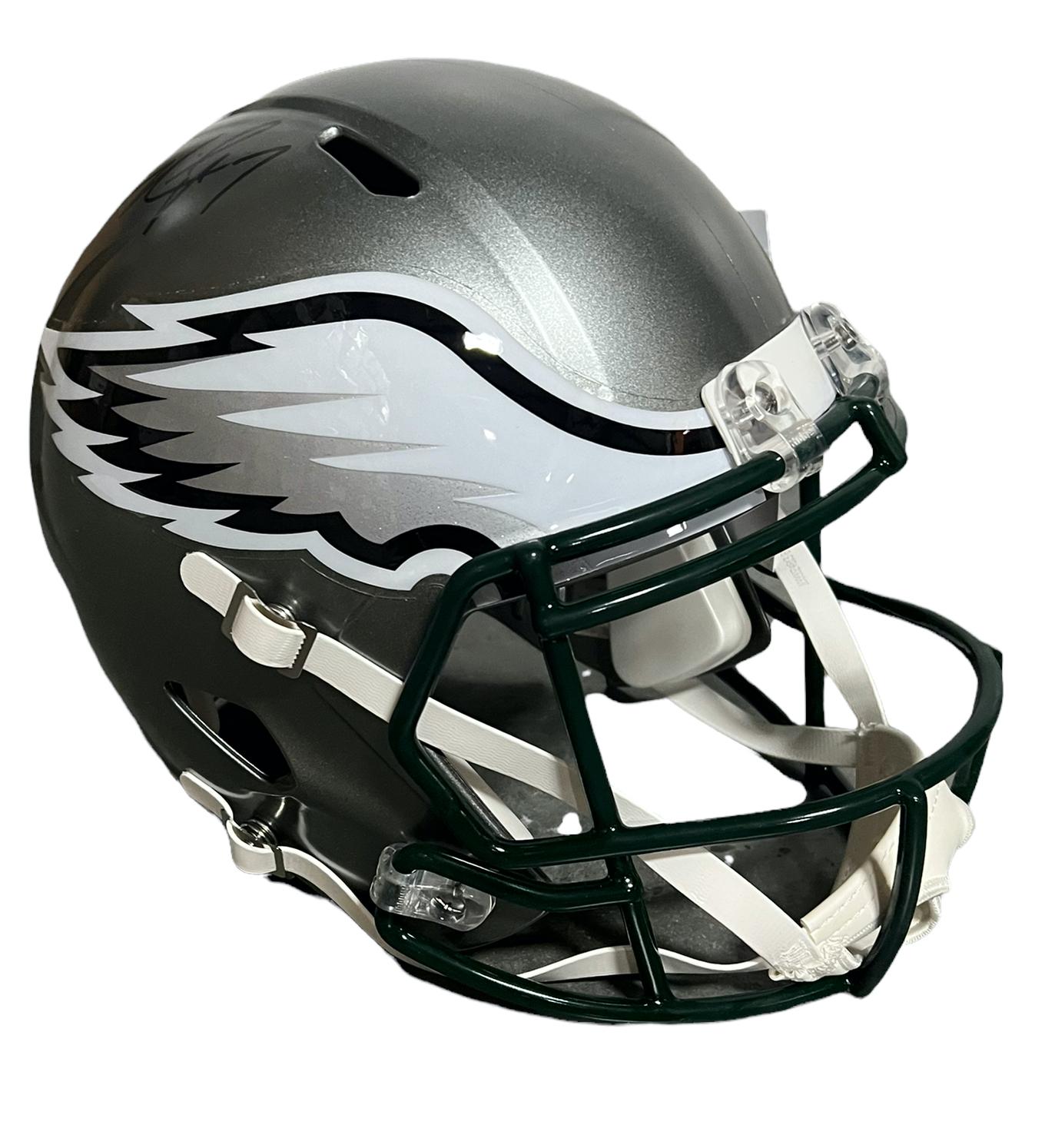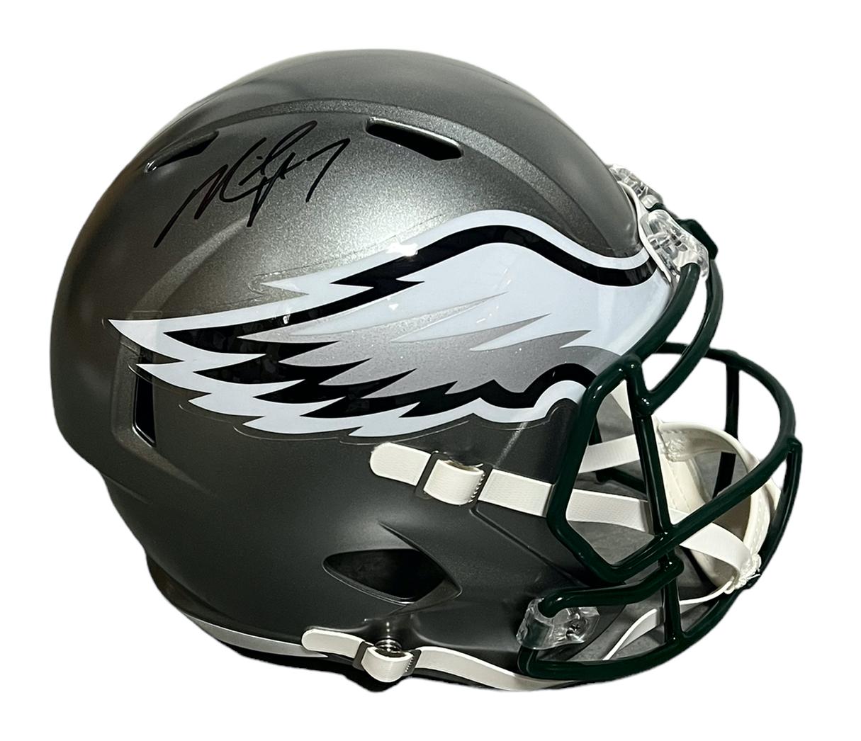 Riddell Philadelphia Eagles Full-Size Replica Flash Alternate Speed Helmet has been hand-signed by Michael Vick.