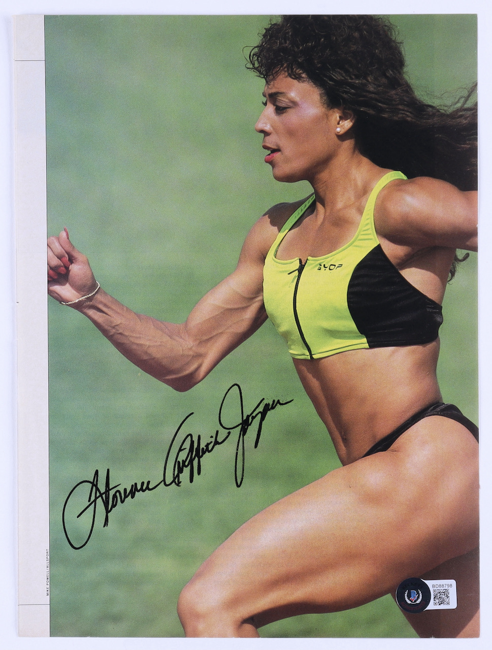 Magazine page measures 8" x 11" in size and has been hand-signed by Florence Griffith Joyner (D. 1998).