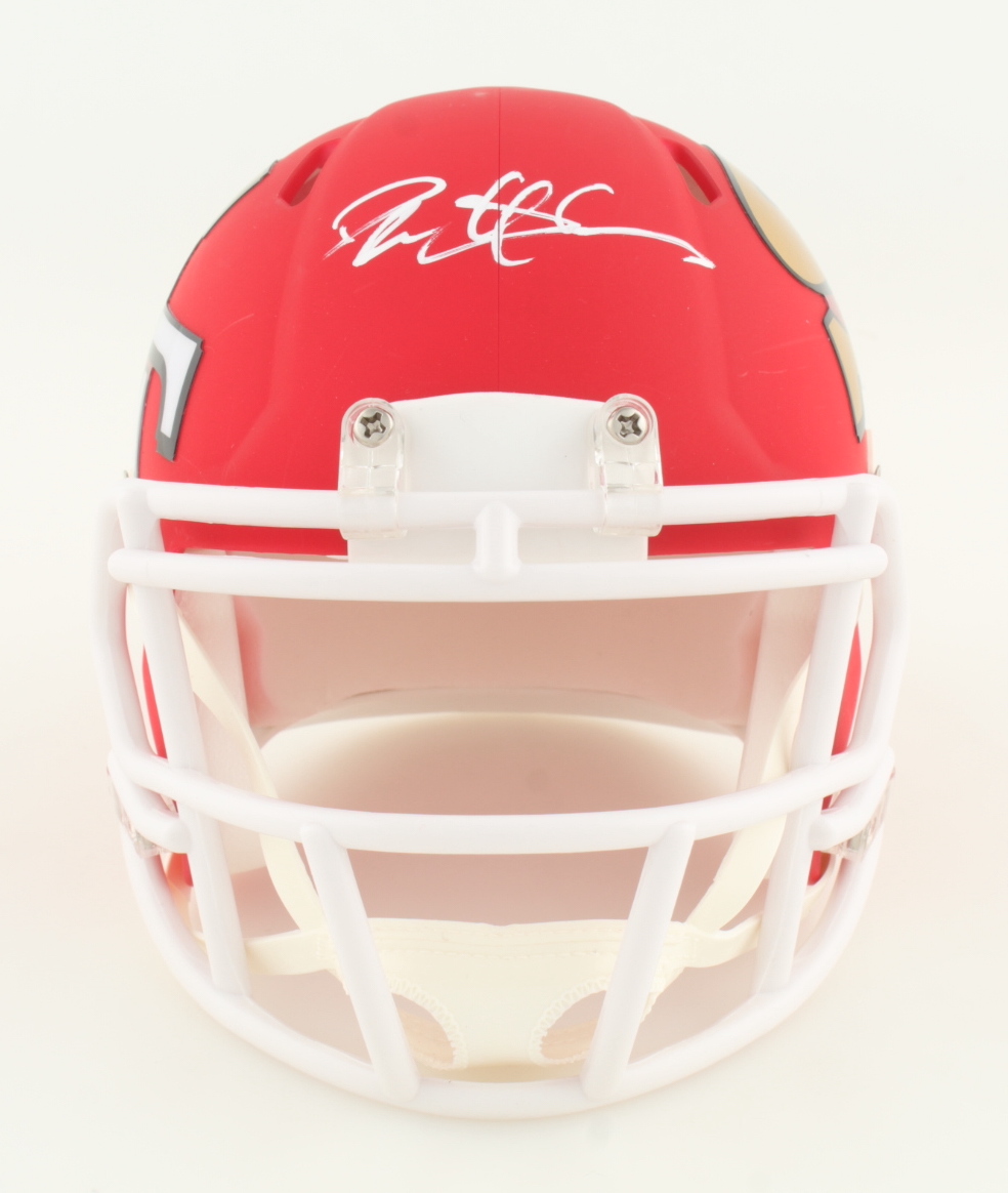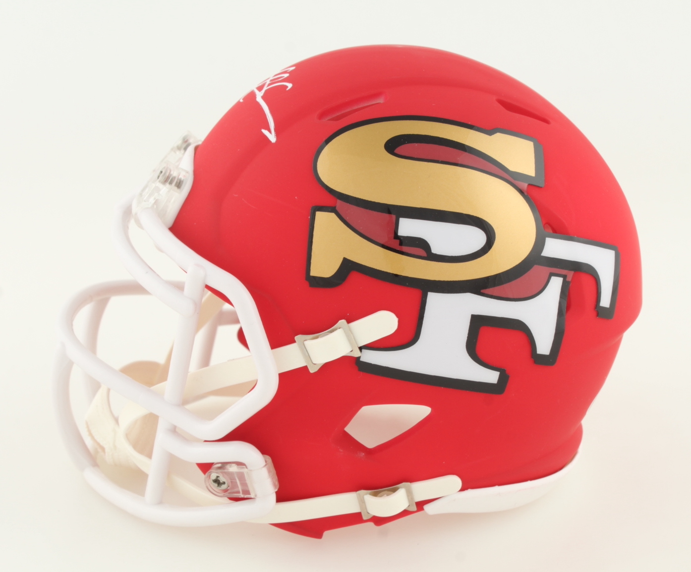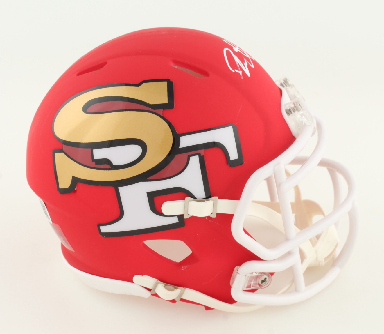 Riddell San Francisco 49ers AMP alternate speed mini helmet. Hand-signed by Deion Sanders (HOF).