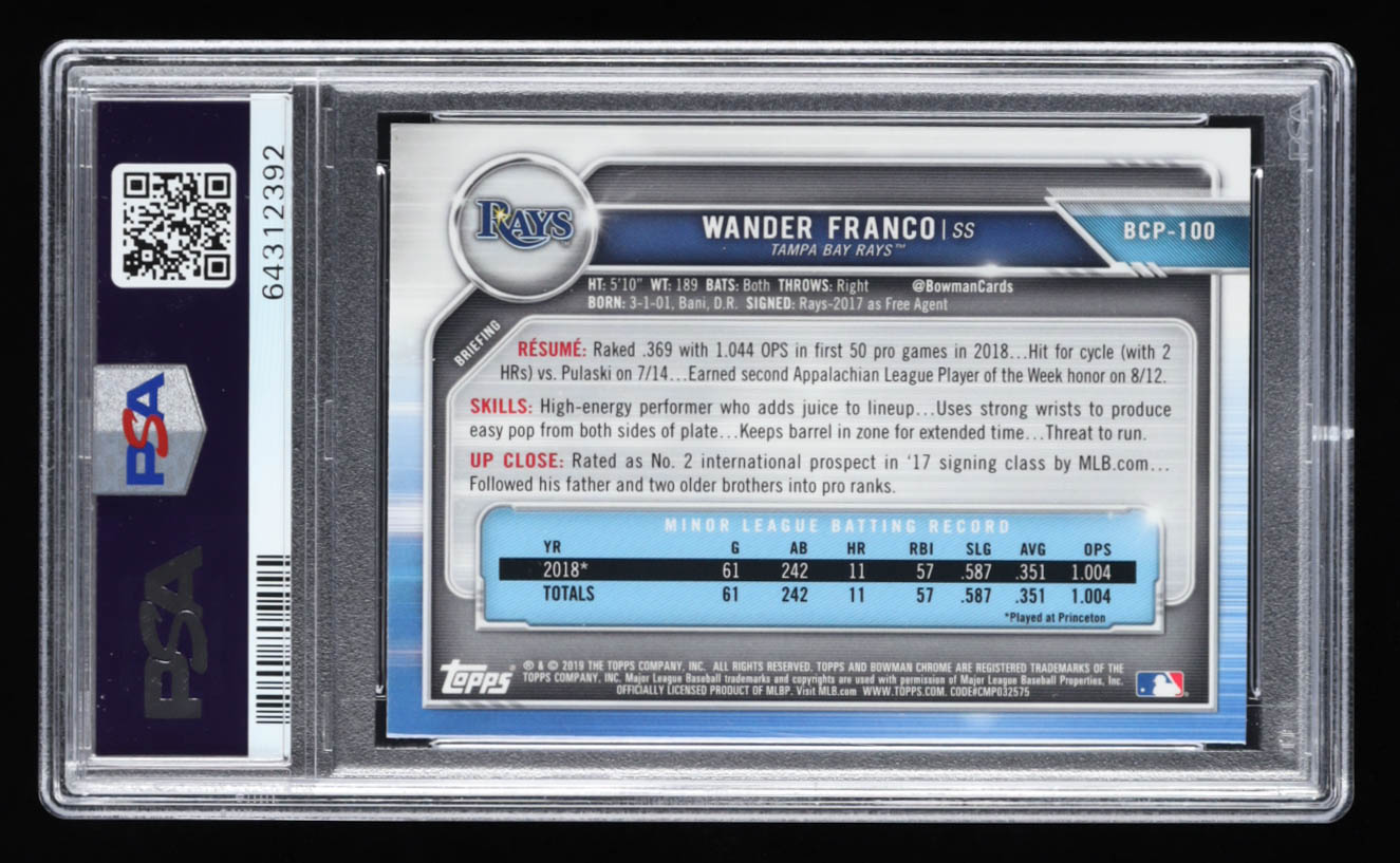 Wander Franco Signed 2019 Bowman Chrome Prospects #BCP100 (PSA)