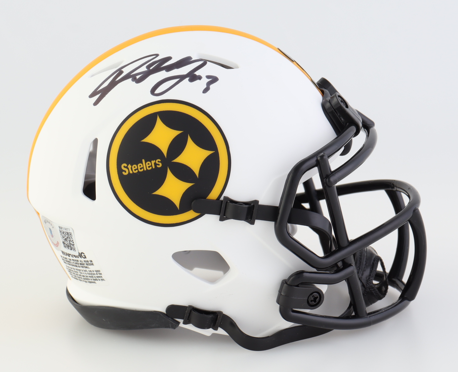 Riddell Pittsburgh Steelers Lunar Eclipse Alternate Speed Mini helmet. Hand-signed by Dwayne Haskins (D. 2022).