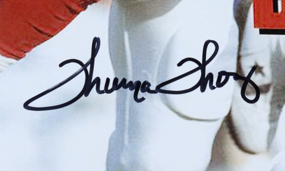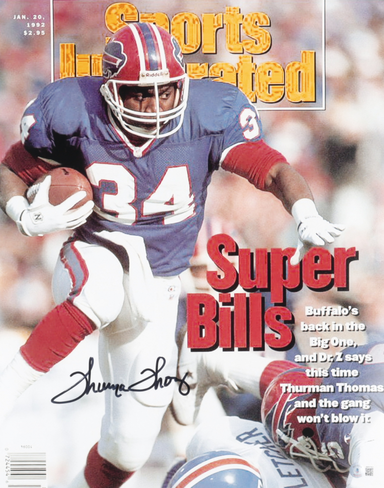 Photo measures approximately 16" x 20" in size and has been hand-signed by Thurman Thomas (Buffalo Bills, HOF).