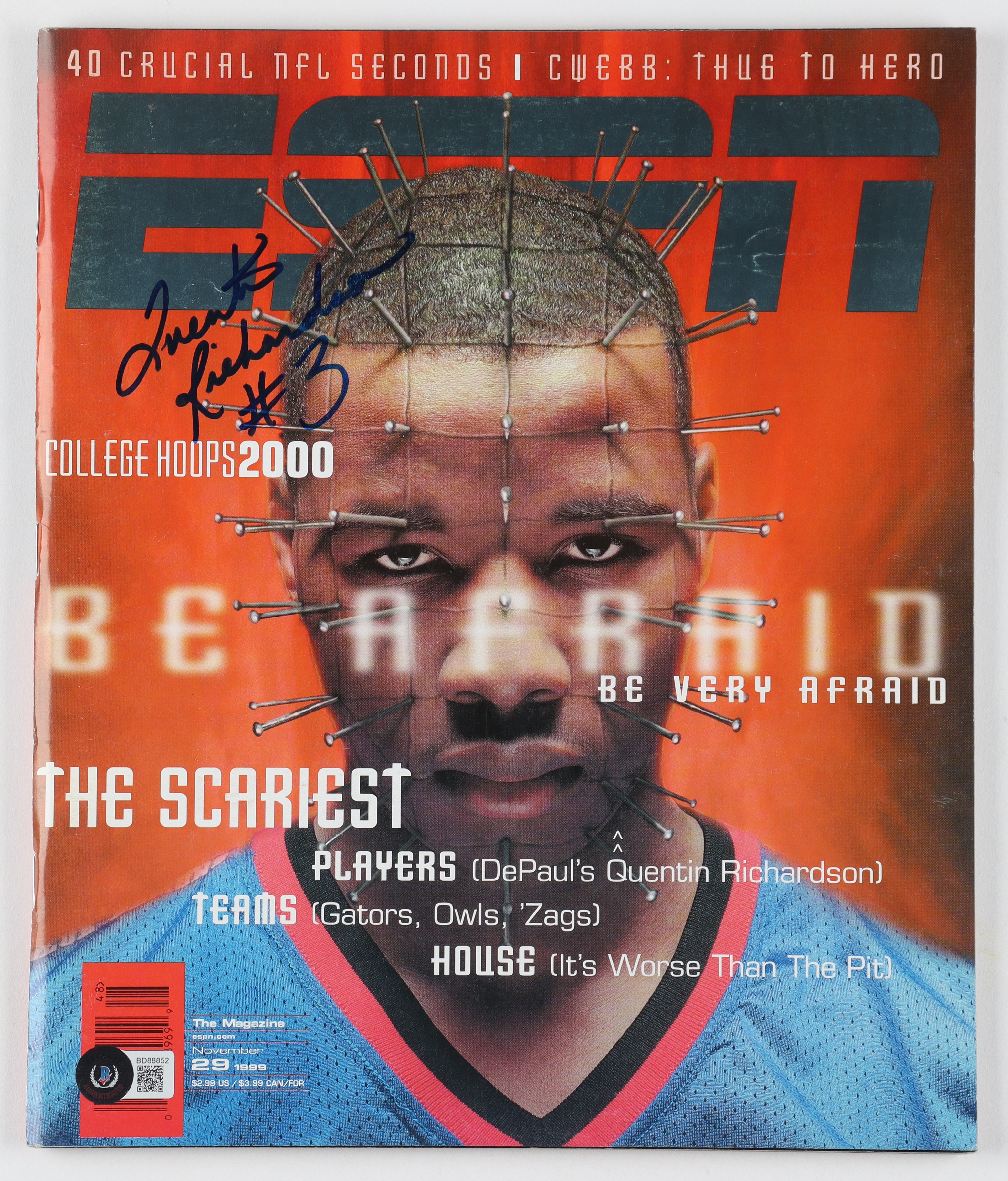 November 29, 1999 issue of ESPN magazine has been hand-signed by Quentin Richardson (New York Knicks).