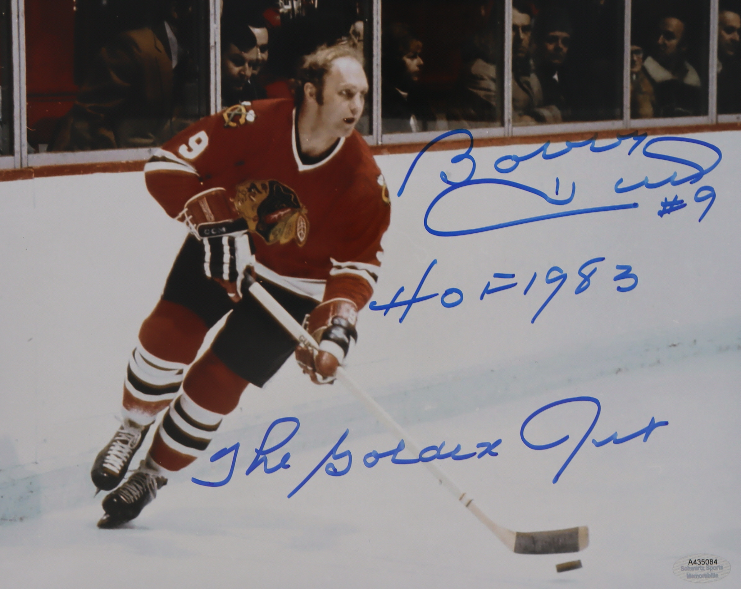 Photo measures 8" x 10" in size. Hand-signed and inscribed by Bobby Hull (Chicago Blackhawks, HOF)