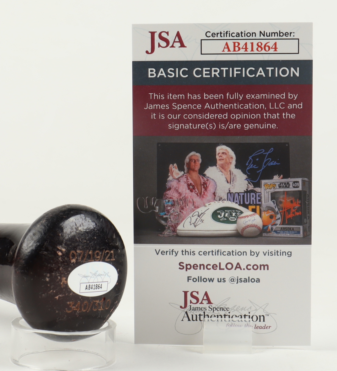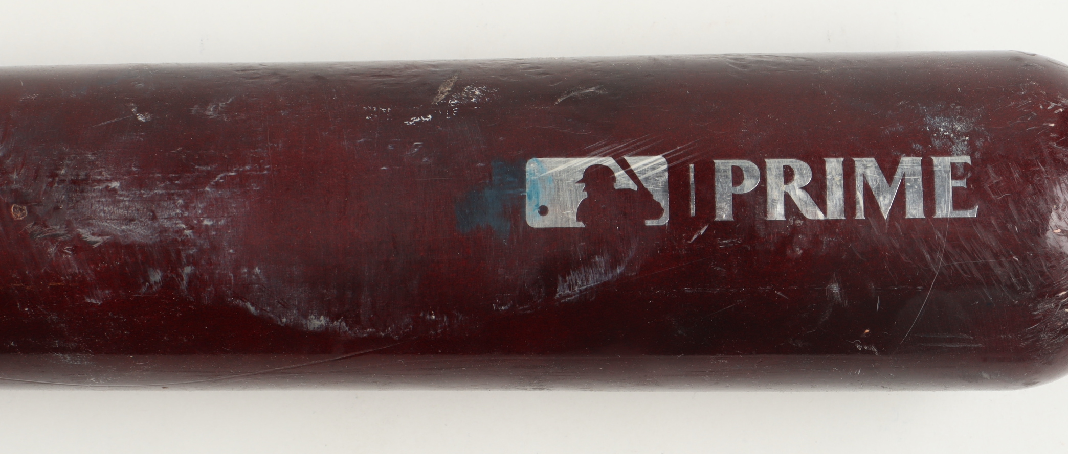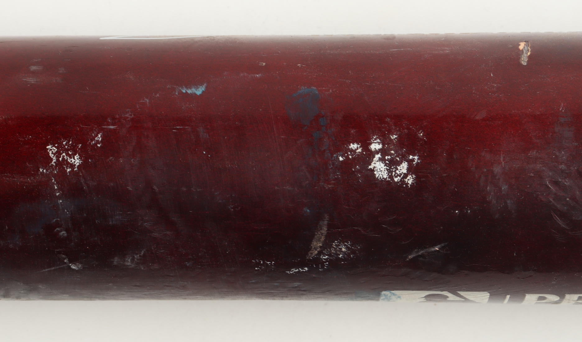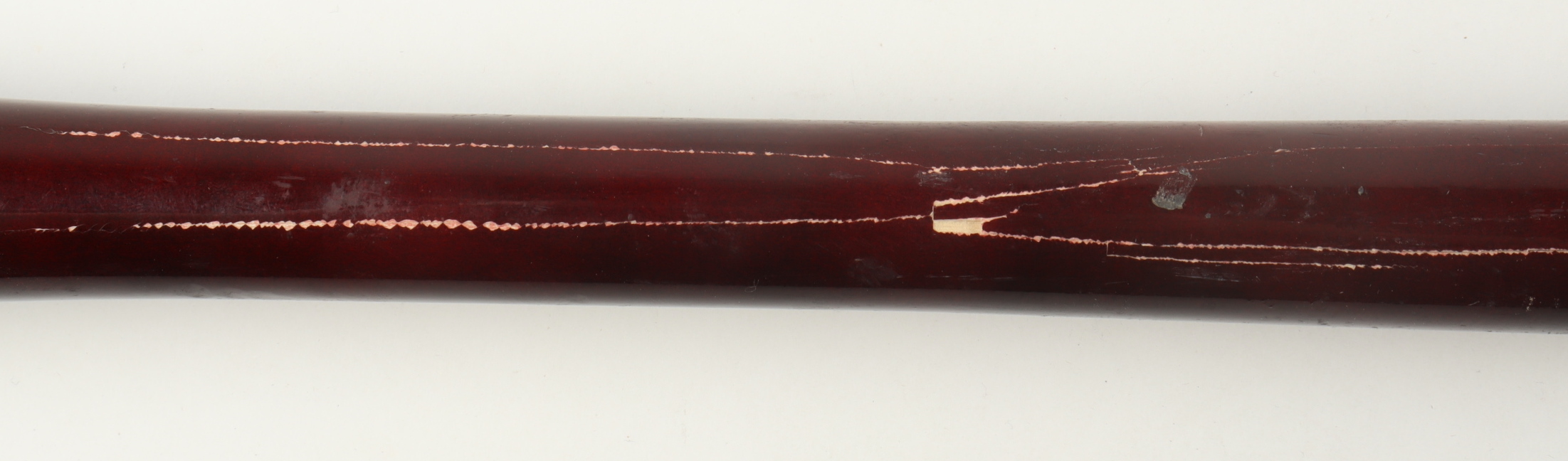 Please note, the bat has been game-used by an unknown player and has associated scuffs, cracks, and discoloration throughout.