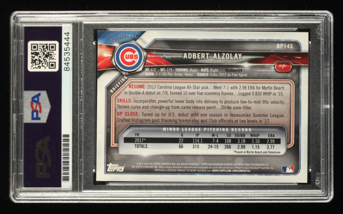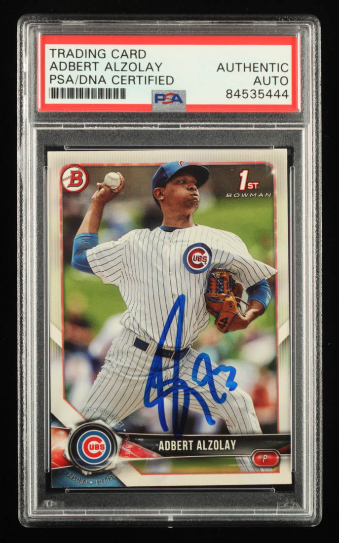 Adbert Alzolay Signed 2018 Bowman Prospects #BP145 RC (PSA)
