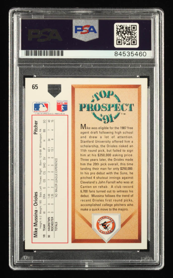 Mike Mussina Signed 1991 Upper Deck #65 RC Inscribed "HOF 19" (PSA)