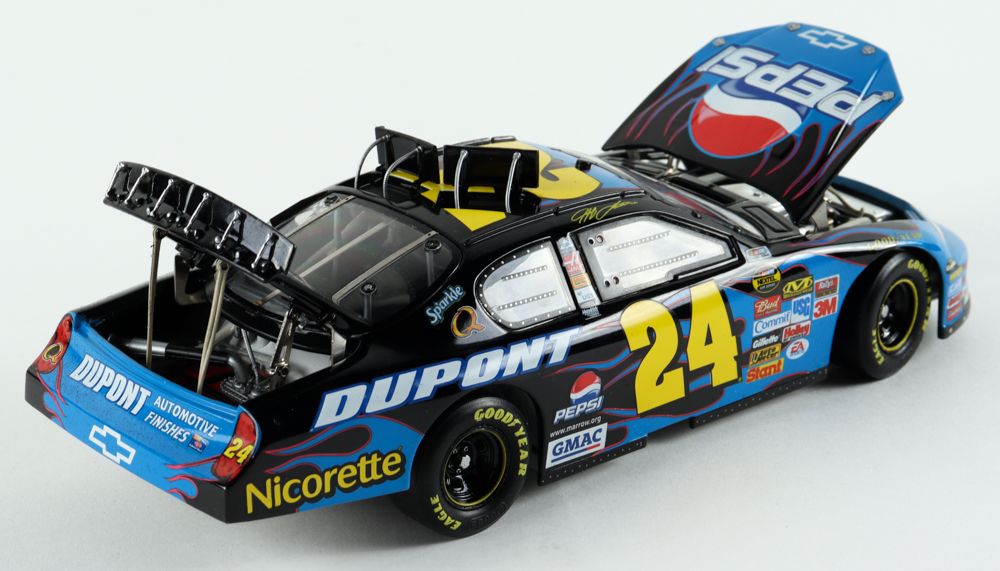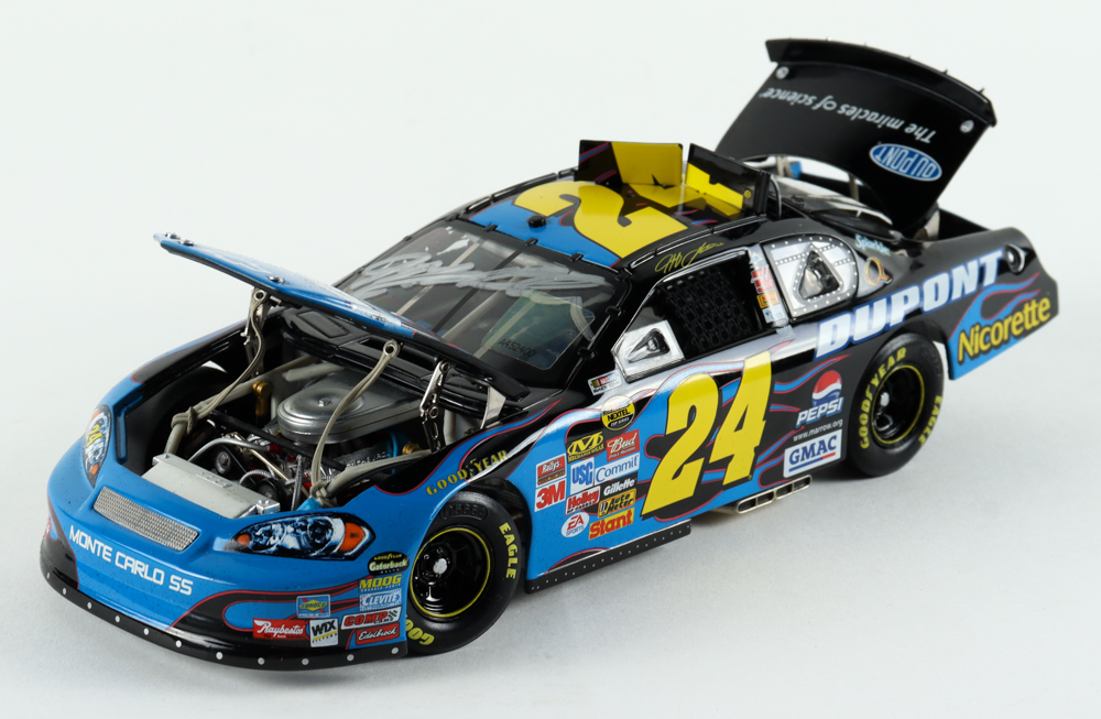 Premium diecast car hand-signed on the windshield by Jeff Gordon. This diecast car is limited edition #424/2,007 and comes in the original packaging as shown.