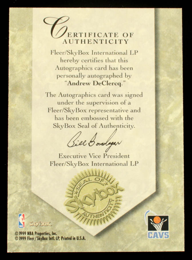 Andrew DeClercq 1999-00 SkyBox Premium Autographics #23