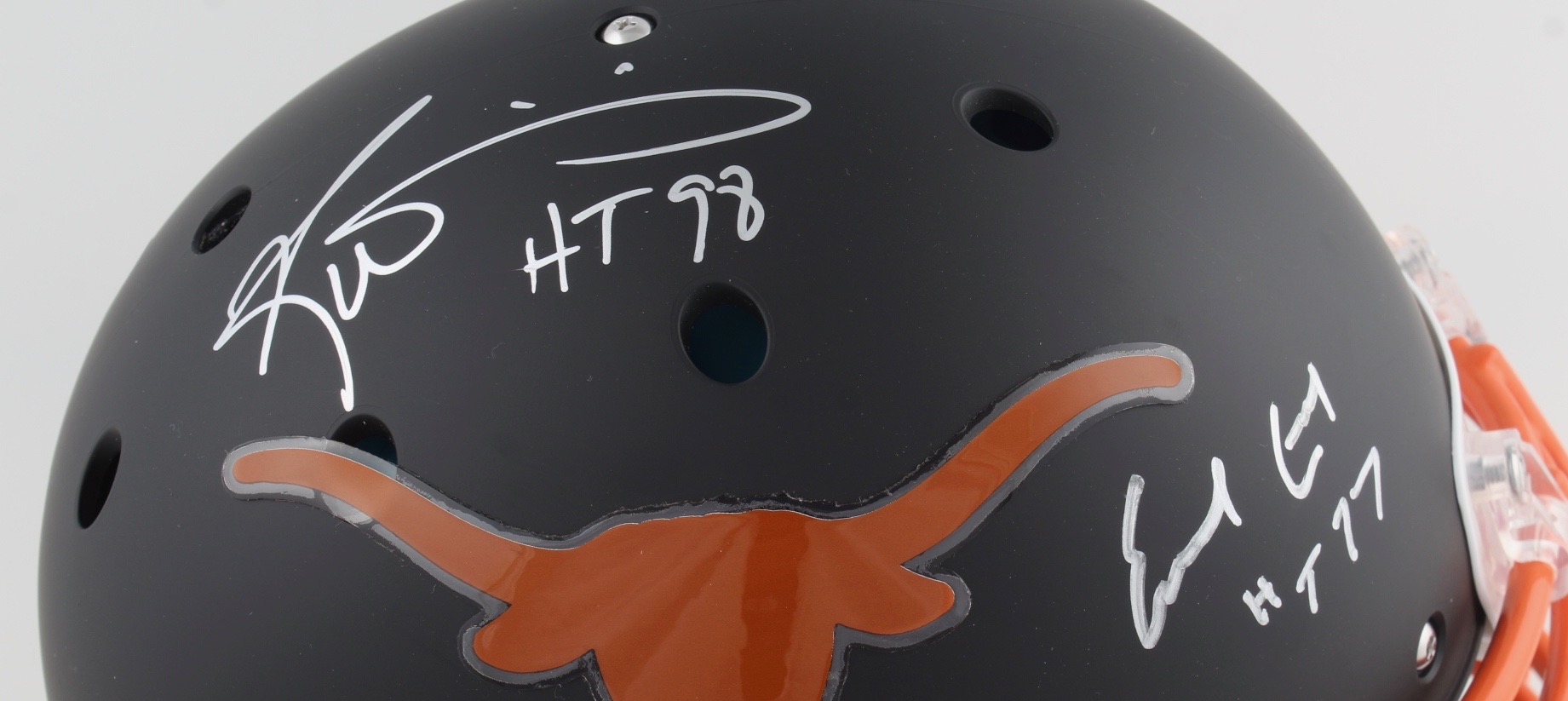 Earl Campbell & Ricky Williams Signed Full-Size Authentic On-Field Matte Black Helmet Inscribed "HT 77" & "HT 98" (JSA)
