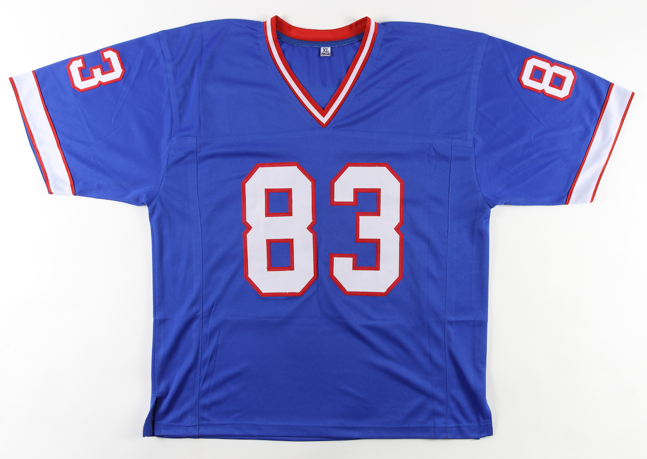 Custom on-field style jersey. Everything is sewn on, size XL. Hand-signed and inscribed by Andre Reed (HOF).
