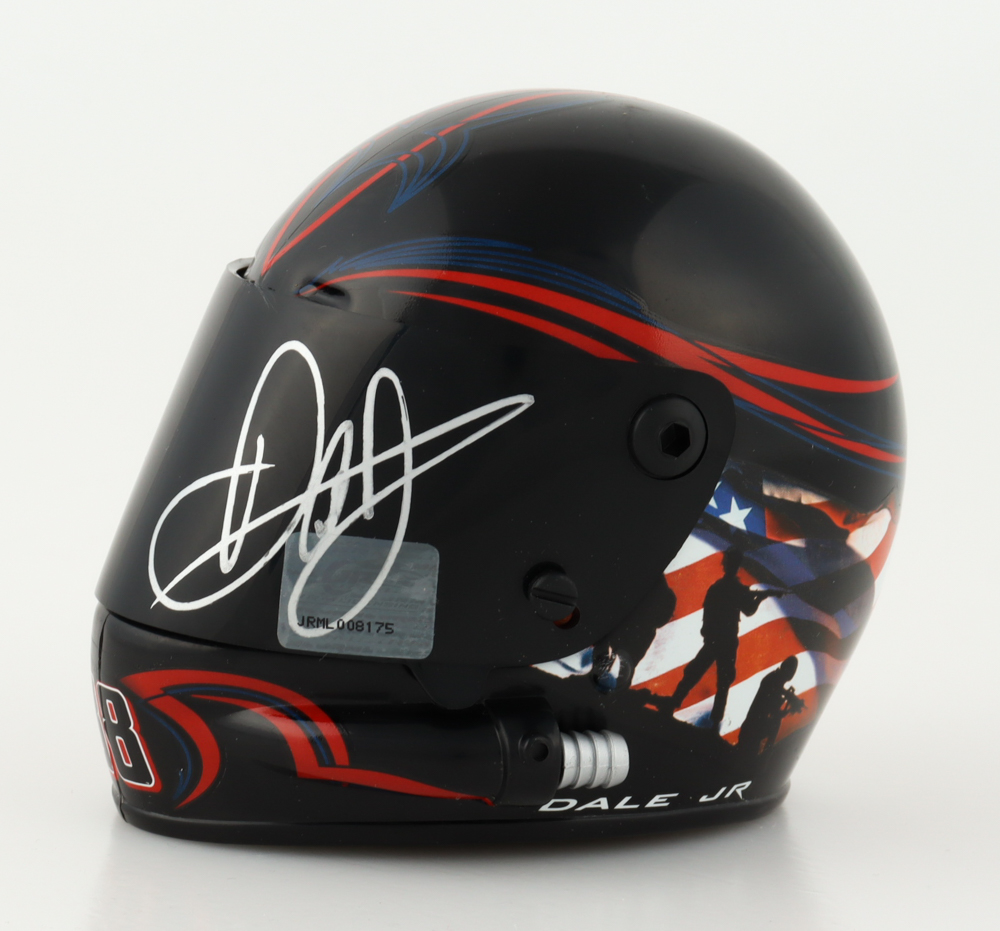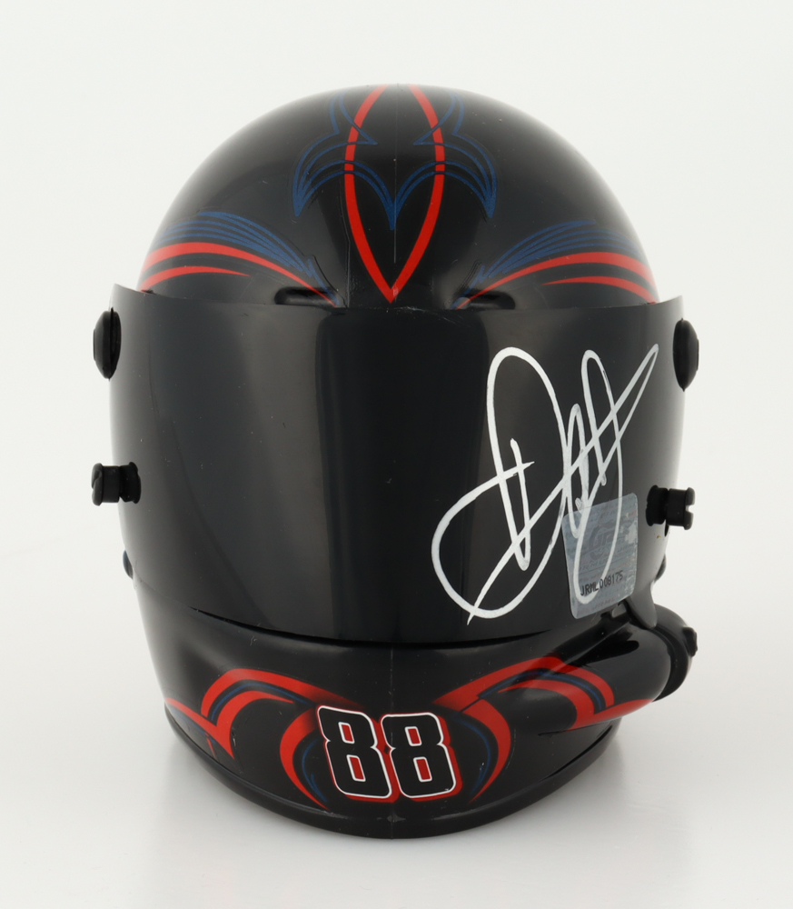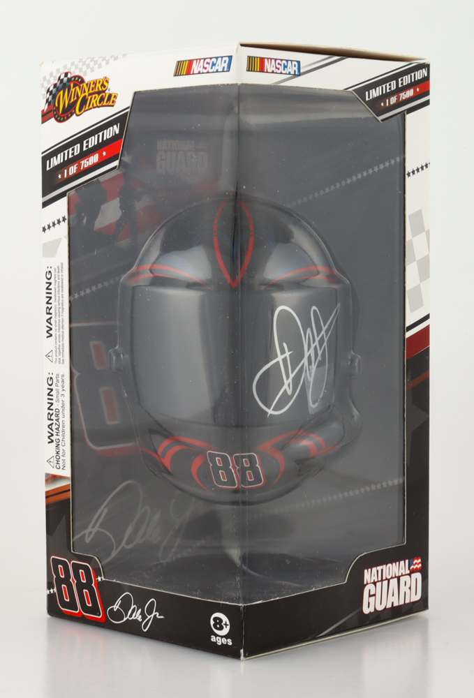 Winner's Circle mini NASCAR helmet is hand-signed on the visor by Dale Earnhardt Jr. The helmet is limited edition to just 7,500 produced and includes the original packaging.