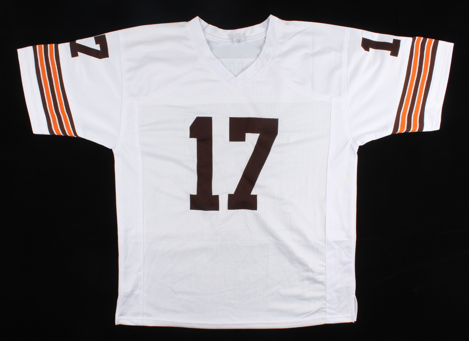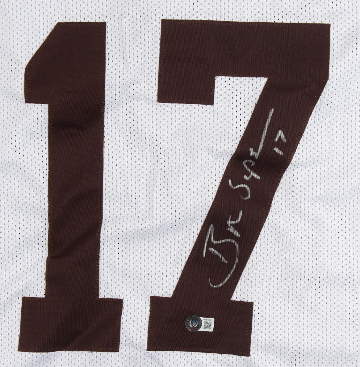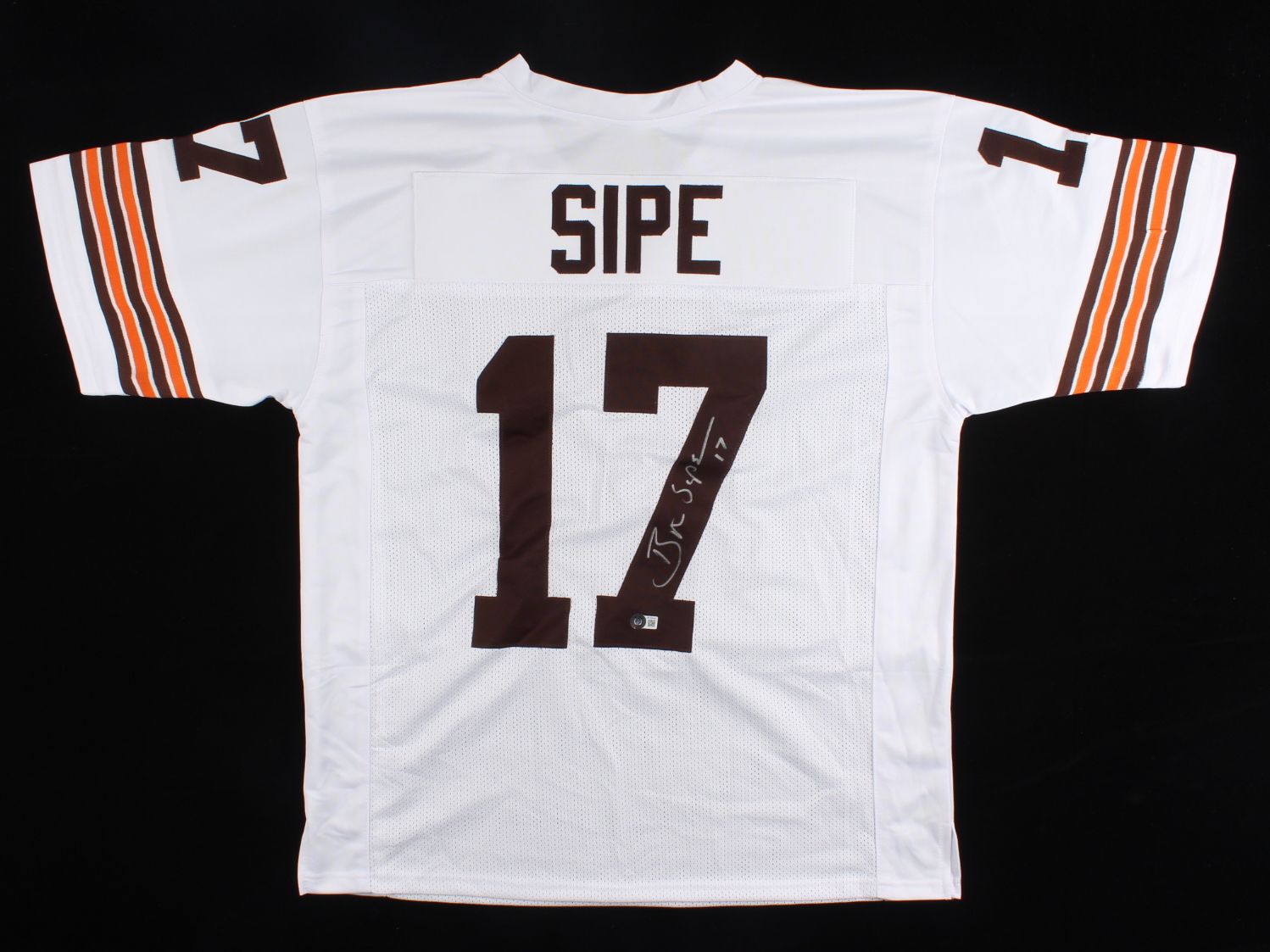 Custom on-field style jersey. Everything sewn on, size XL. Hand-signed by Brian Sipe.
