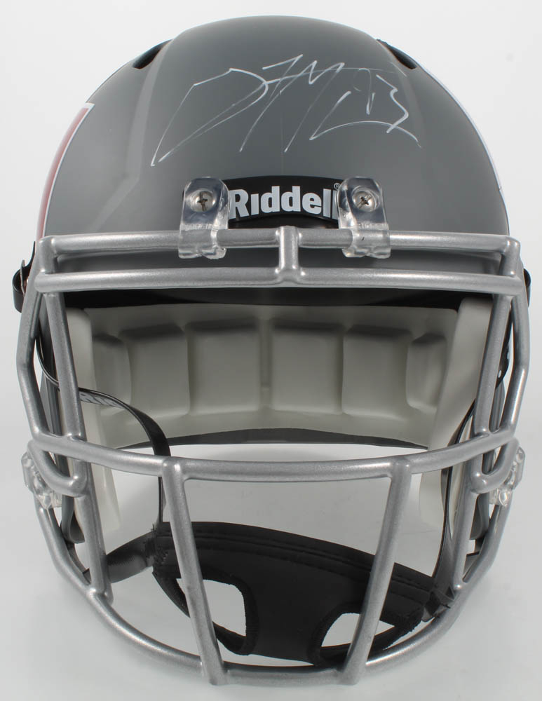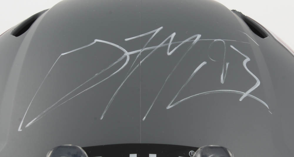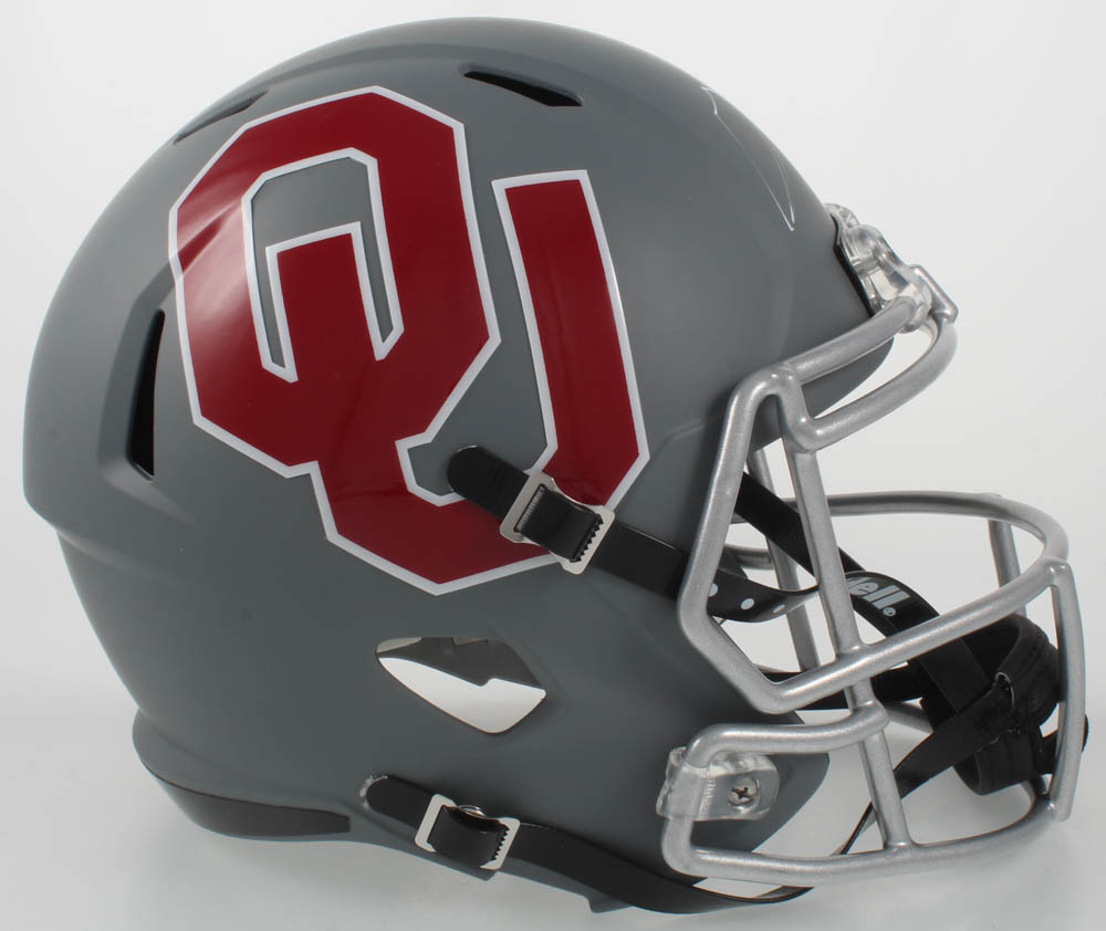 Oklahoma Sooners Matte Grey Full-Size Replica Speed Helmet has been hand-signed by Gerald McCoy.