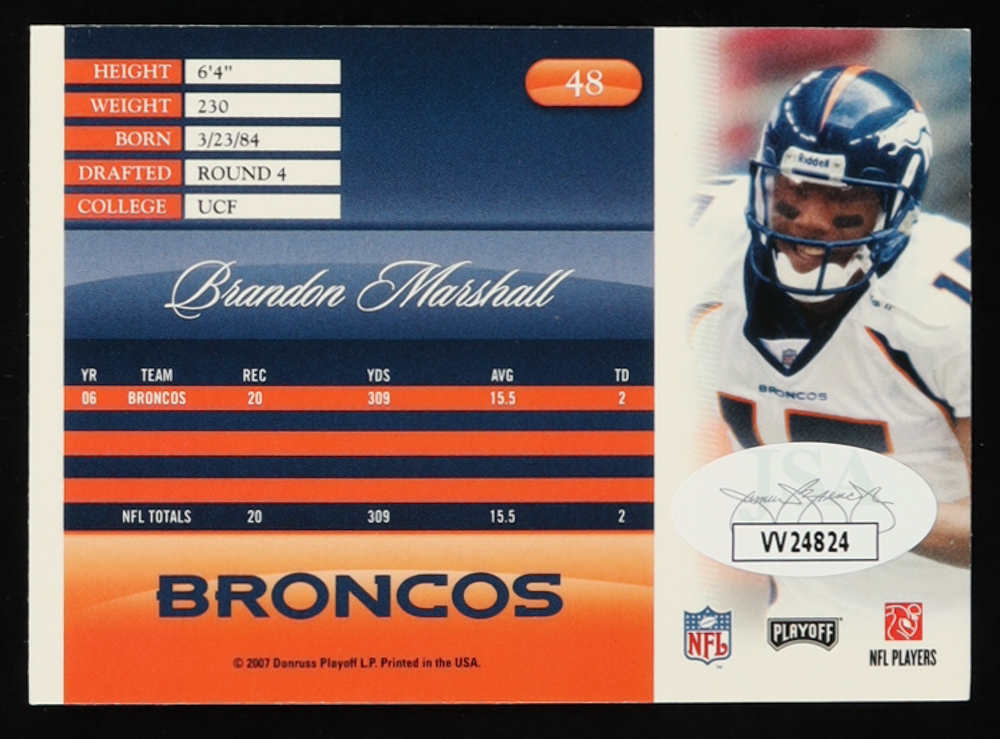 Brandon Marshall Signed 2007 Playoff Prestige #48 (JSA)