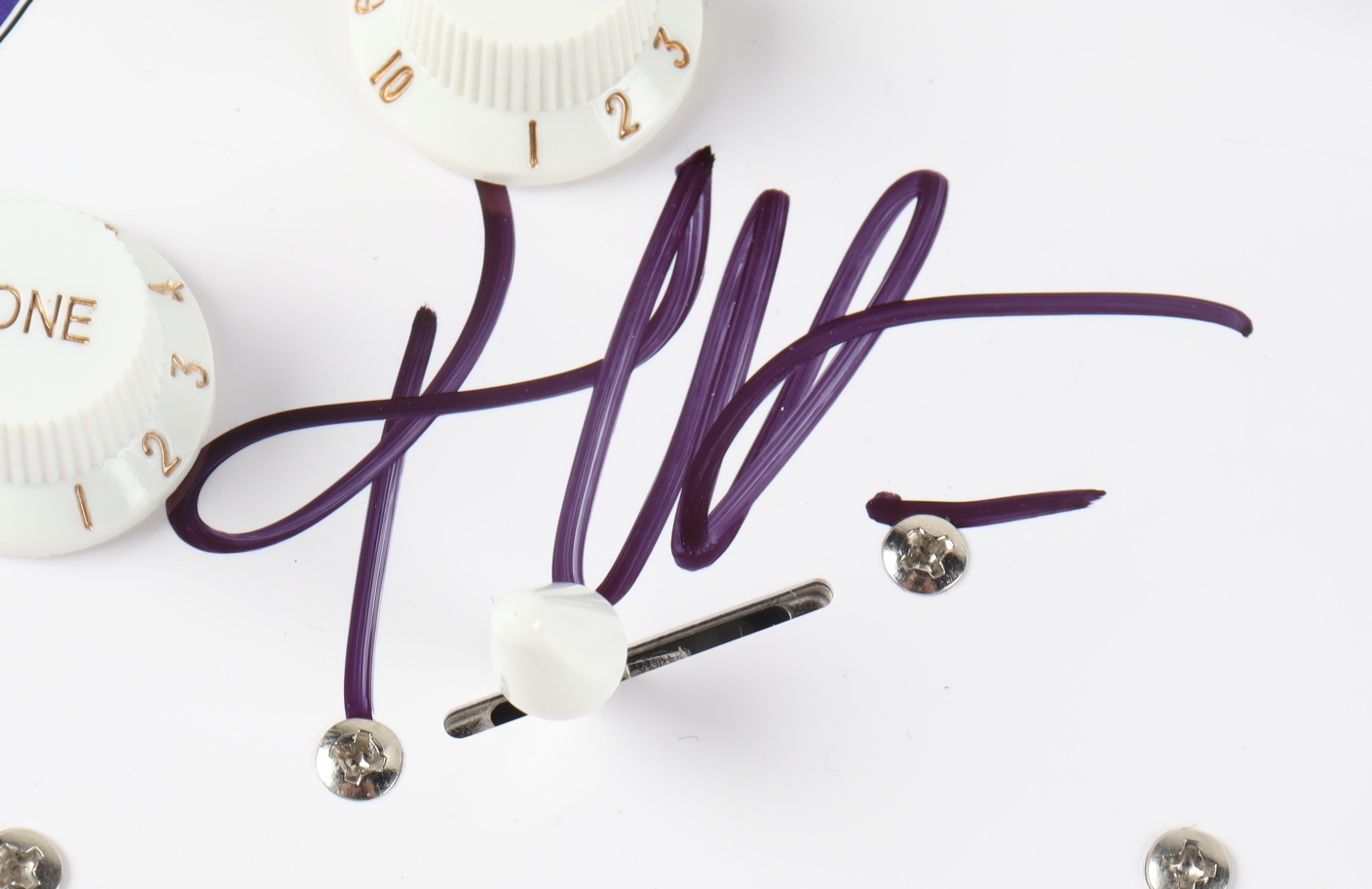 Custom electric guitar measures 39" in length and has been hand-signed by Rami Malek.