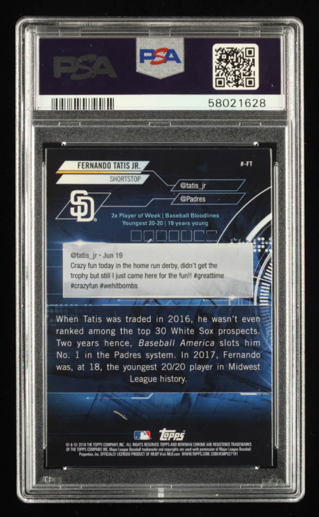 Fernando Tatis Jr. 2018 Bowman Chrome Hashtag Bowman Trending #FT RC (PSA 10)