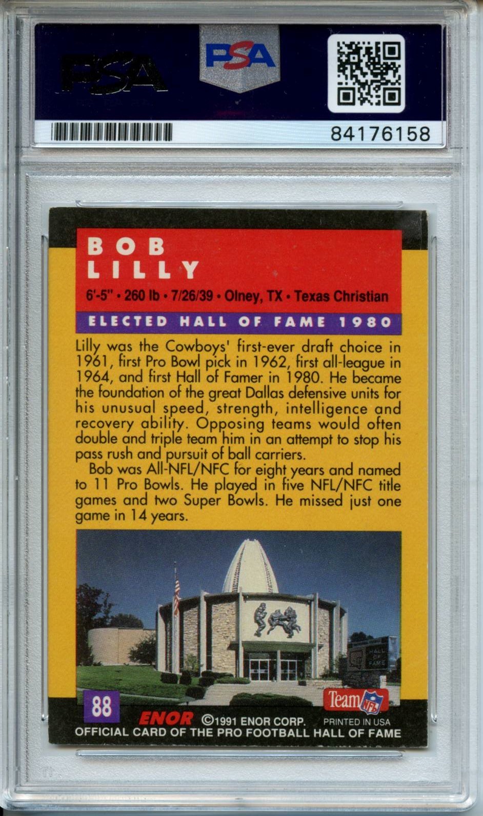 Bob Lilly Signed 1991 ENOR Pro Football HOF #88 (PSA)