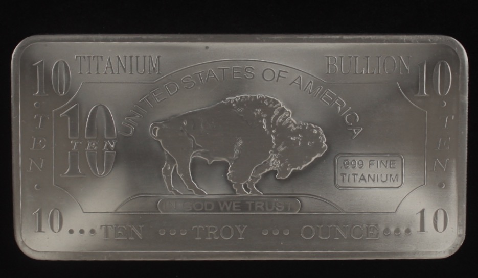 Ten Troy Ounce "Buffalo" .999 Fine Titanium Bullion Bar