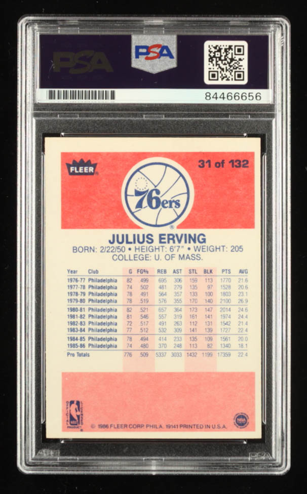 Julius "Dr. J" Erving Signed 1986-87 Fleer #31 (PSA)