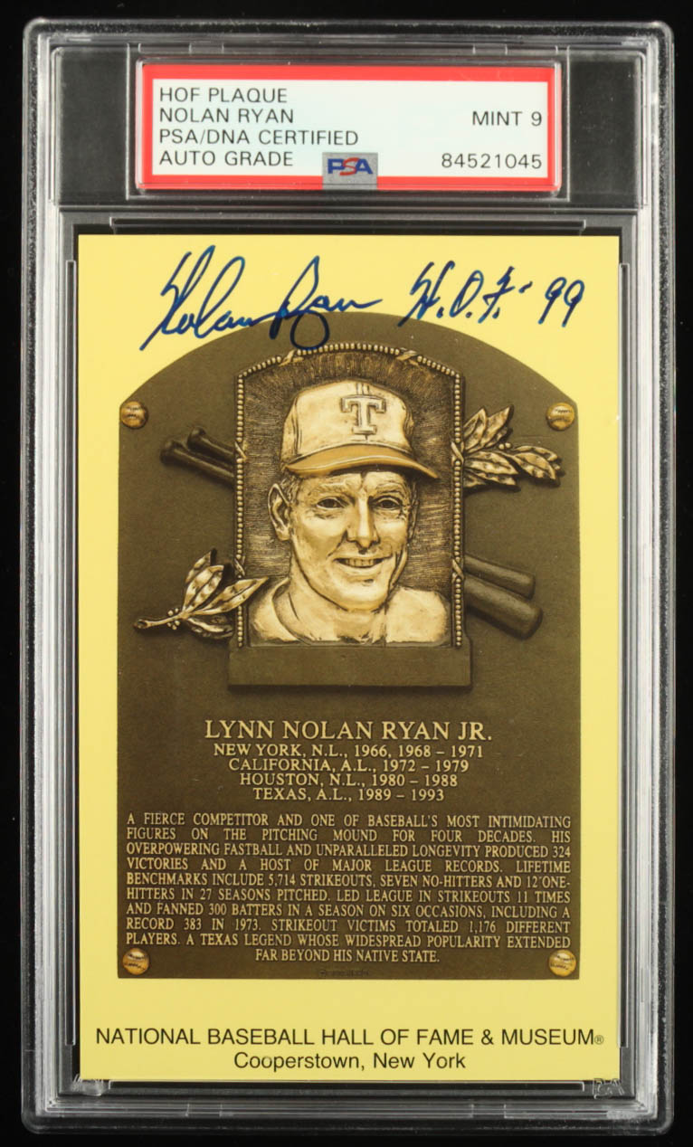Nolan Ryan Signed Hall of Fame Plaque Postcard Inscribed "H.O.F. '99 (PSA)