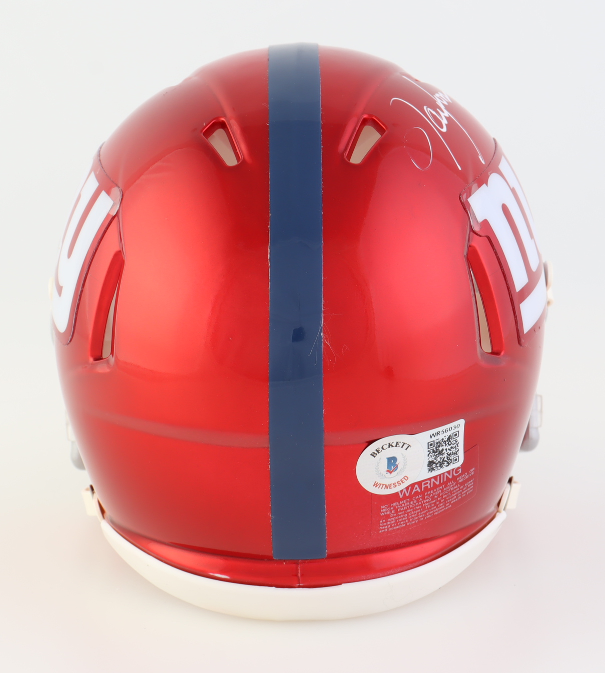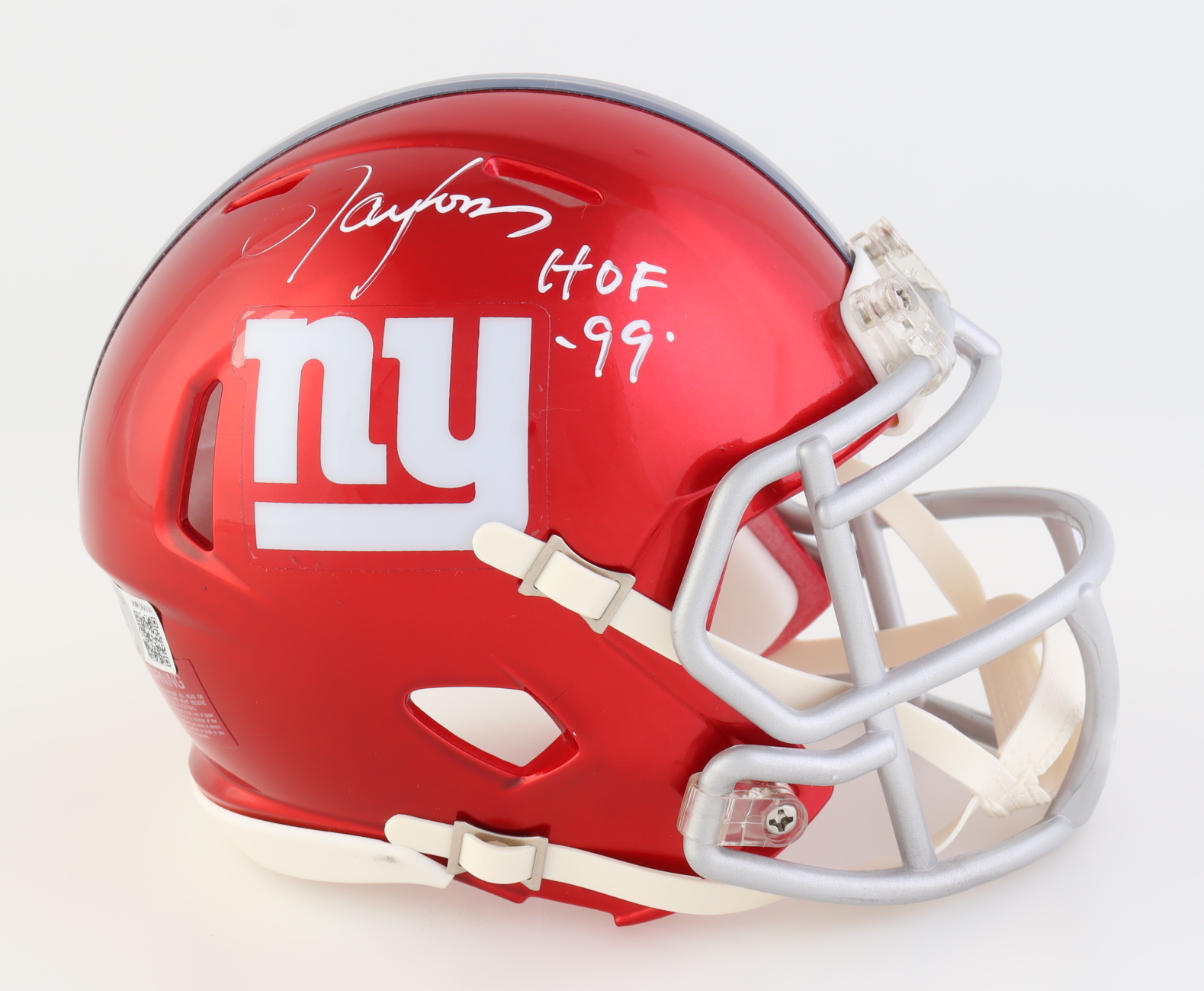 Riddell New York Giants Flash alternate speed mini helmet. Hand-signed and inscribed by Lawrence Taylor (HOF).