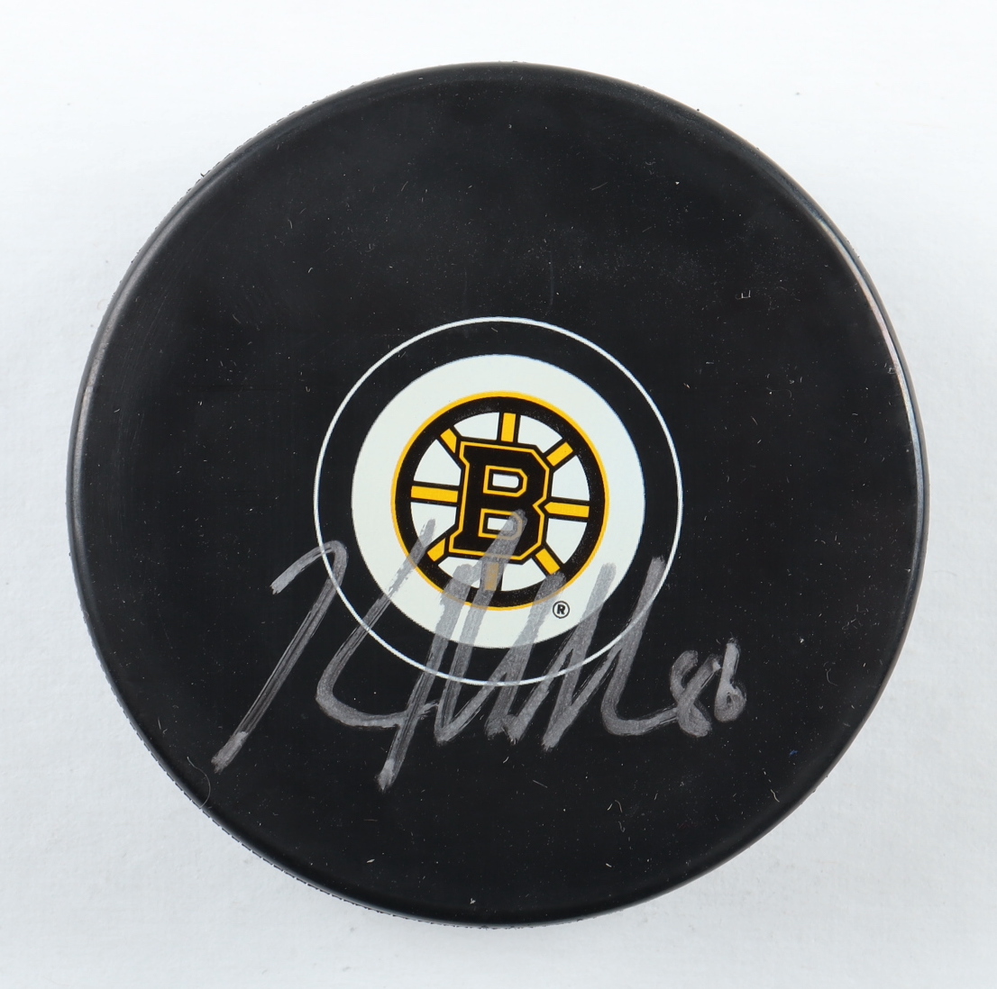 Boston Bruins logo hockey puck. Hand-signed by Kevan Miller.